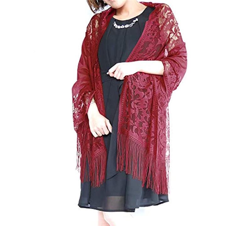 [イヴ エヴァン] ストール レース フォーマル 結婚式 二次会 パーティ パーティー ショール UVケア 冷房対策 慶弔 慶弔用 レディース ワインレッド |