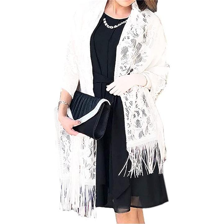 [イヴ エヴァン] ストール レース フォーマル 結婚式 二次会 パーティ パーティー ショール UVケア 冷房対策 慶弔 慶弔用 レディース ホワイト |