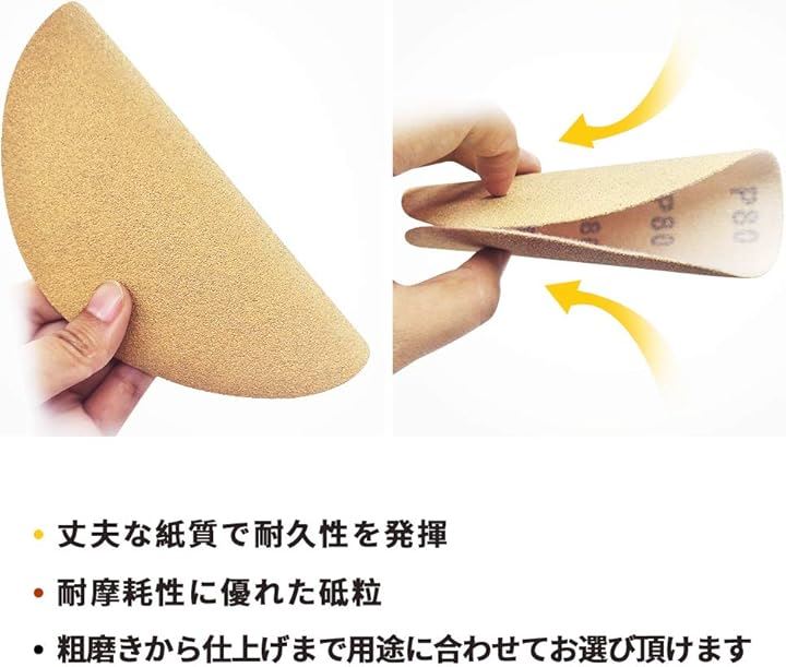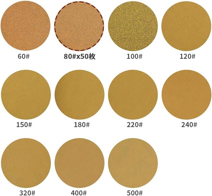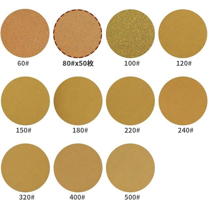 サンディングペーパー サンドペーパー 50枚 粒度 穴なし 面ファスナー 紙やすり φ152mm セット 研磨 サンダー用 丸型 ディスク エアーサンダー丸パッド 木工用 吸じんランダムアクションサンダー用 ミニルーター用 交換パーツ