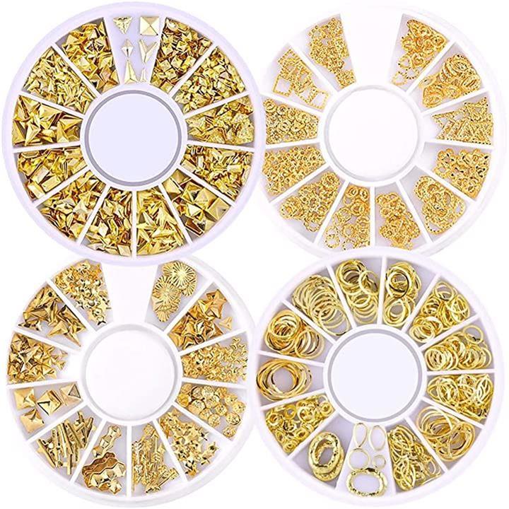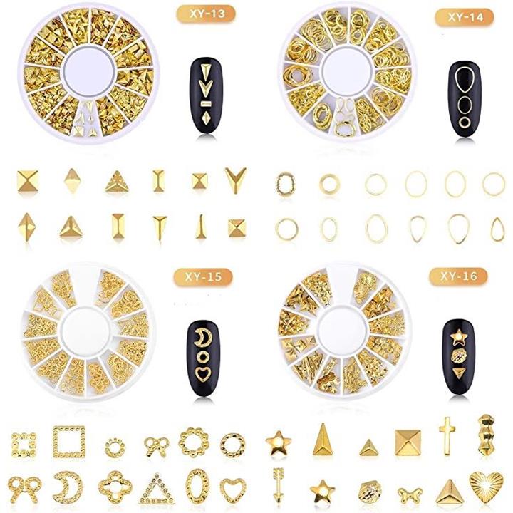 メタルパーツ-メタルスタッズ 4ケースセットD レジン-ネイルパーツ
