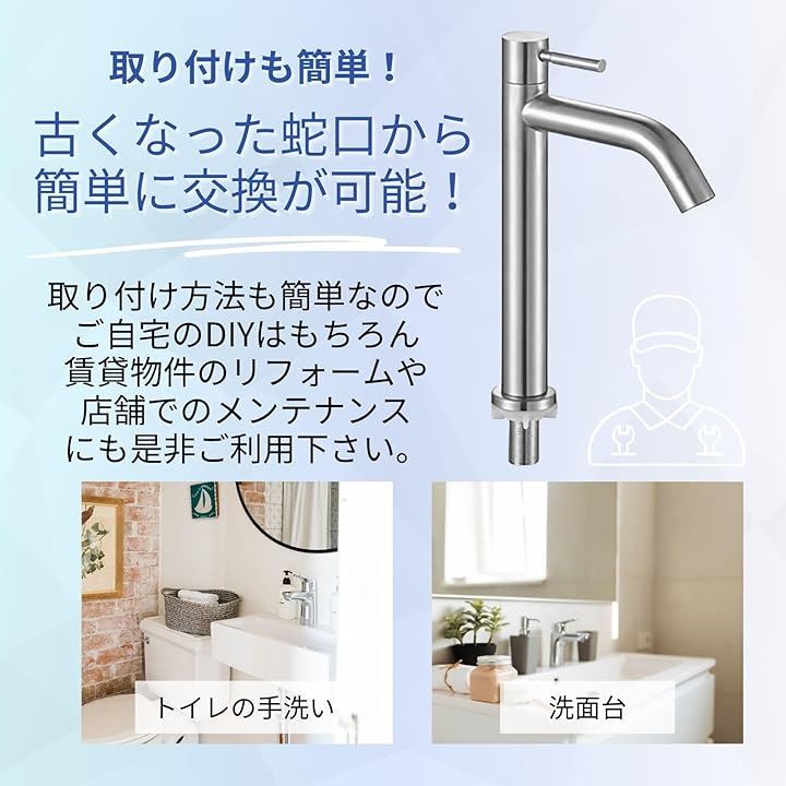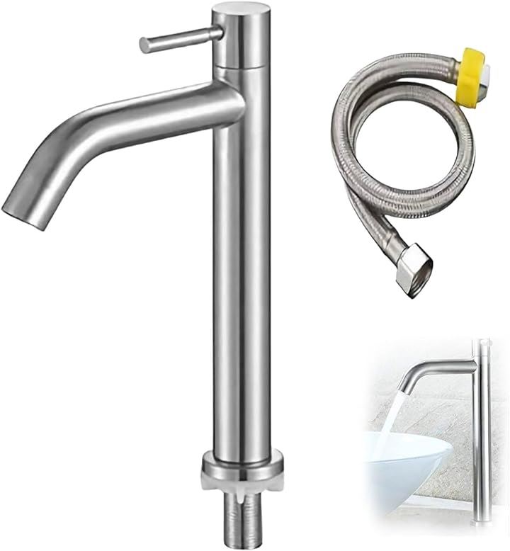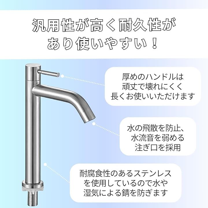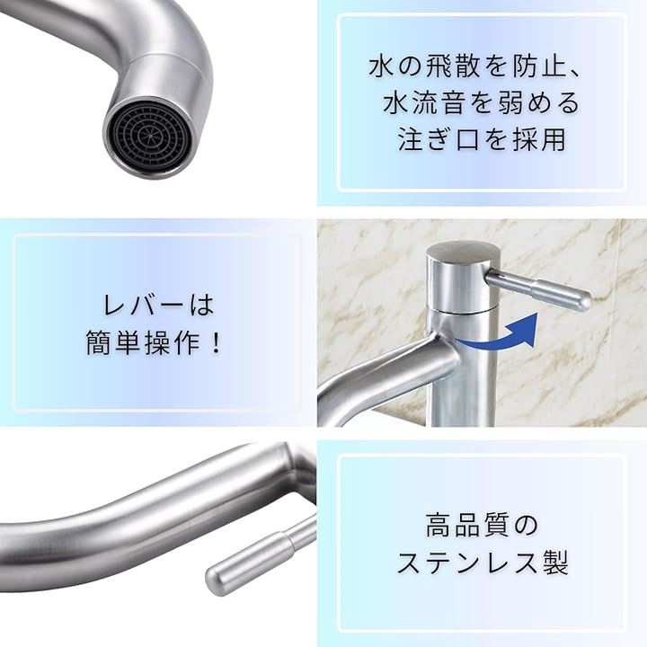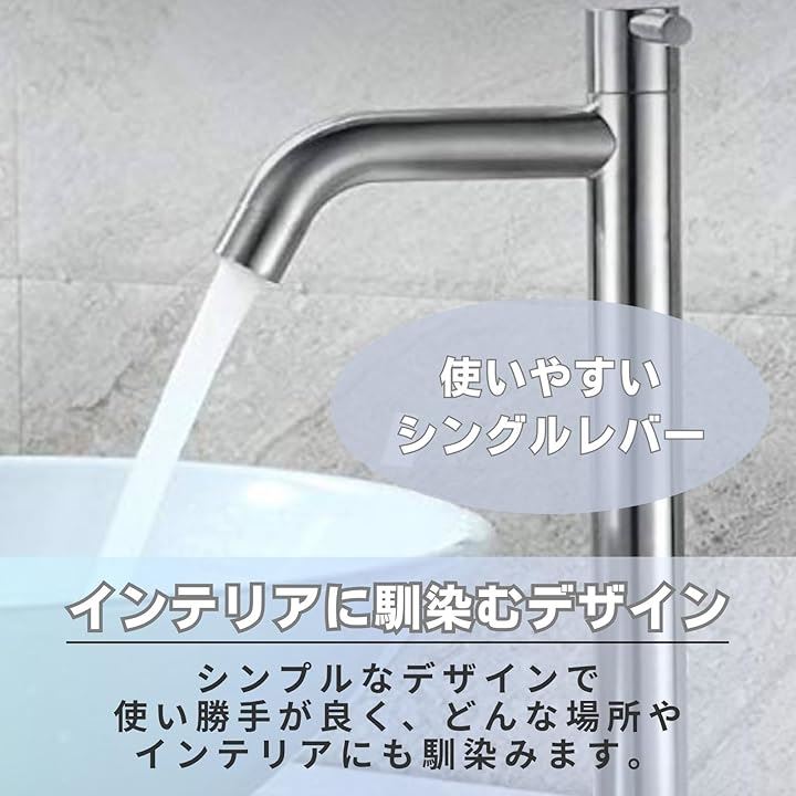 洗面用 シングルレバー 単水栓 ステンレス製 ロング水栓 蛇口 立水栓 手洗いボウル