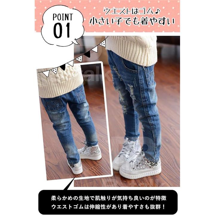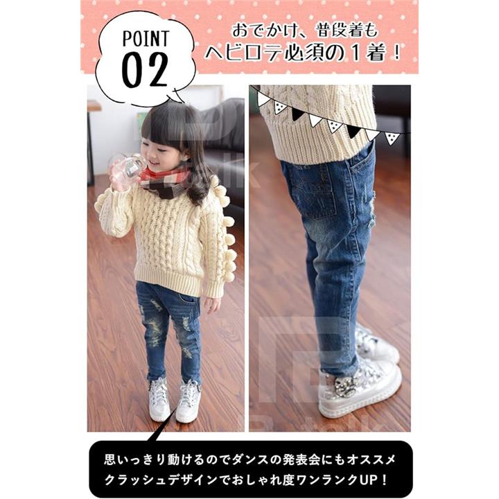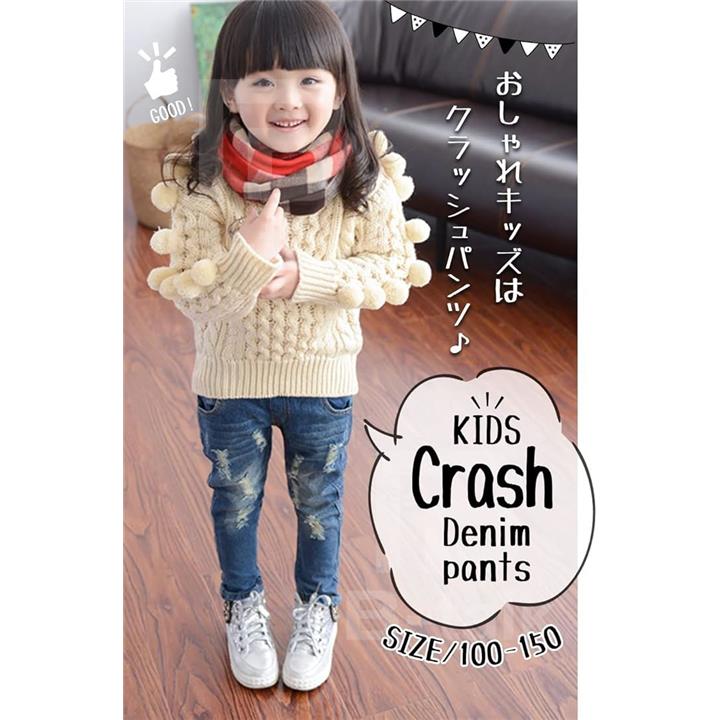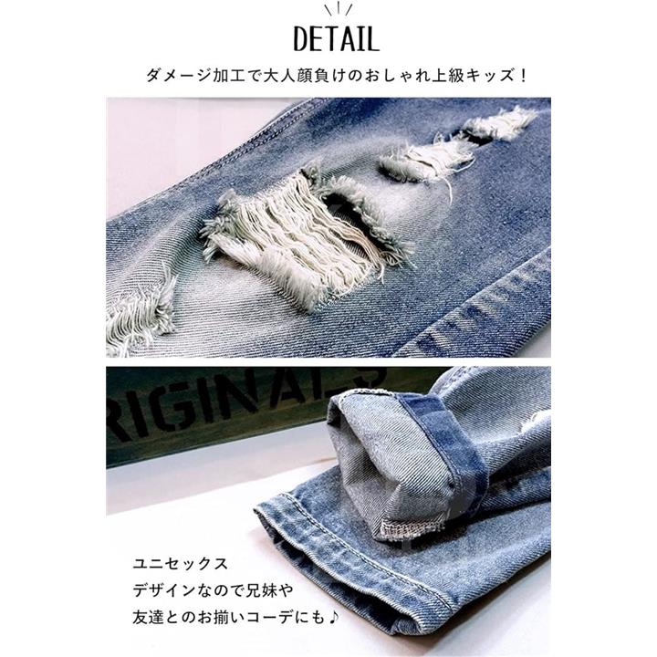 キッズ 女の子 男の子 ダメージ デニムパンツ ゆったり ジーンズ クラッシュ ジーパン 子供服