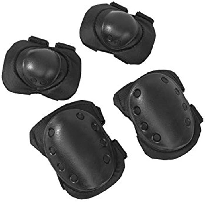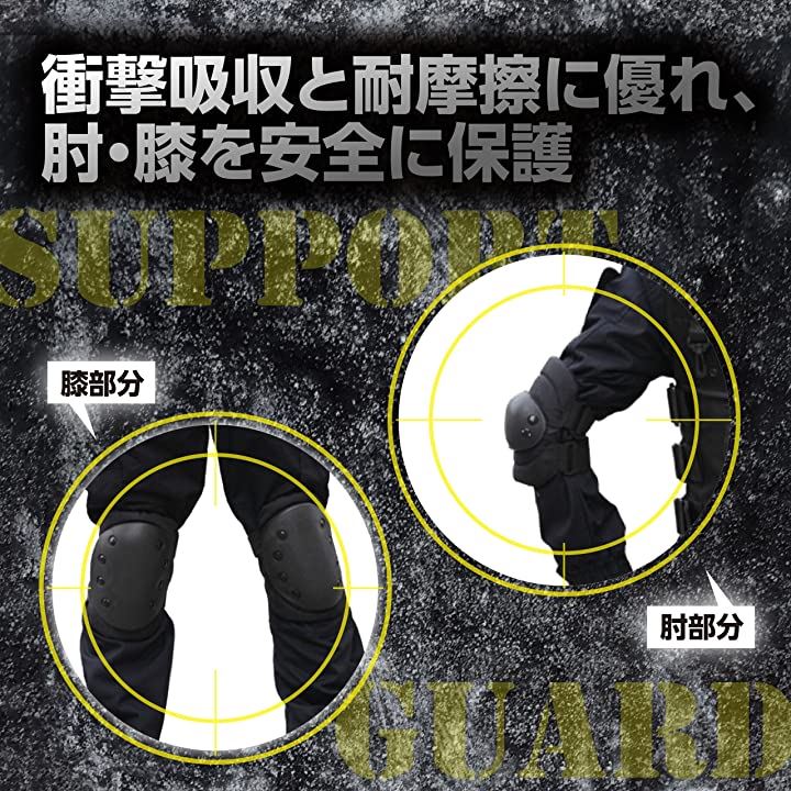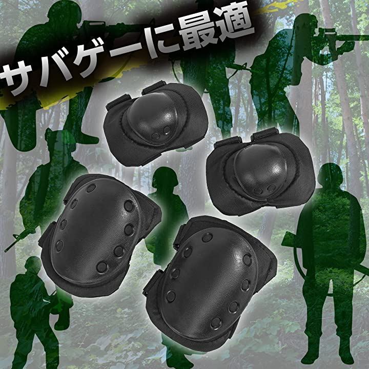 タクティカル ニーパット 4点セット 肘 膝 エルボーパッド サバゲー プロテクター 01 ブラック