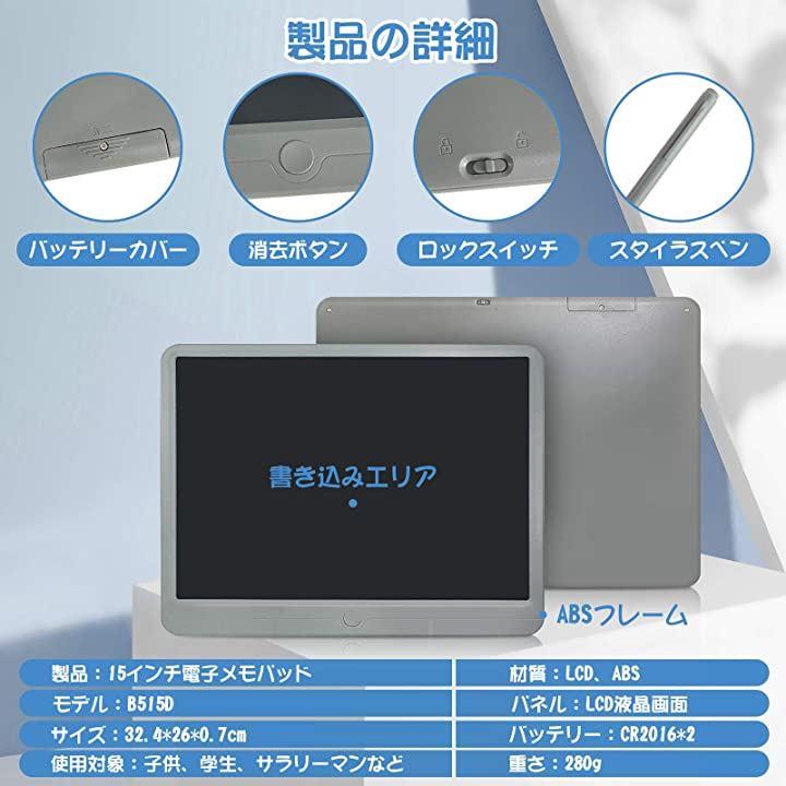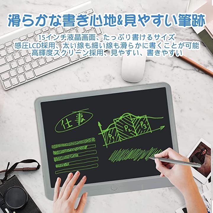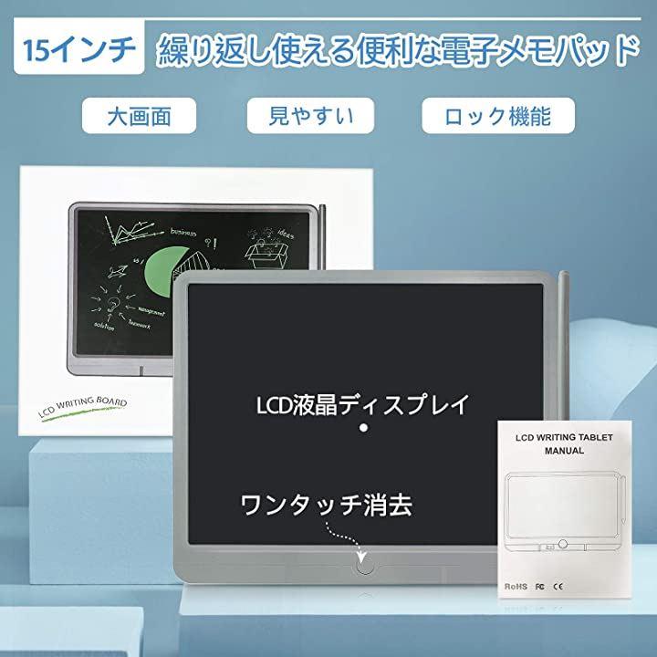 互換品電子手帳 電子メモ帳 LCDタブレット ロック機能 ワンタッチ消去 ペン付き 15インチ