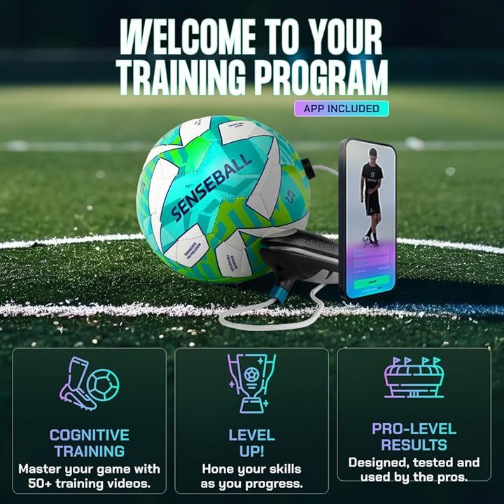 プロのクラブに承認されたのサッカーキックトレーナーであるSenseBallは、適応性、認知スキル、フィールドでの習得を向上させます。