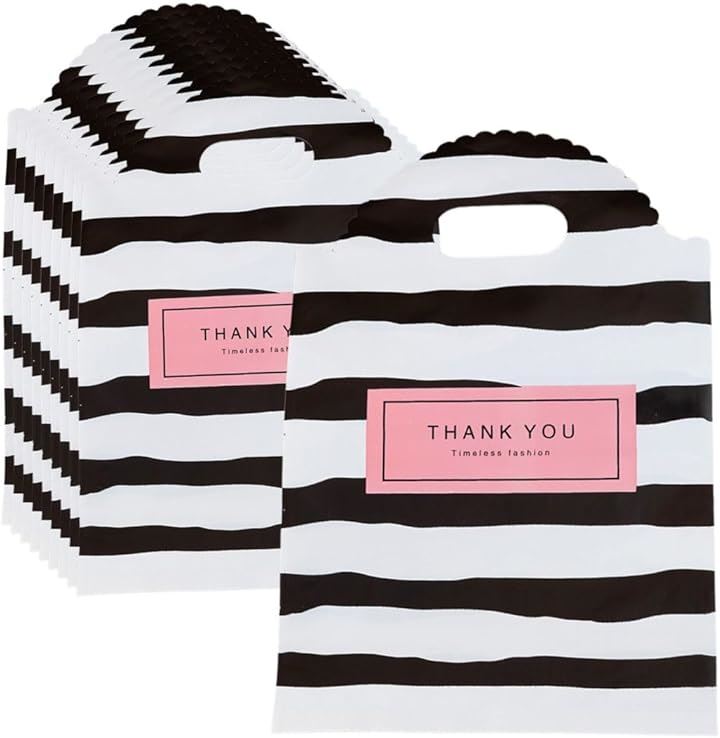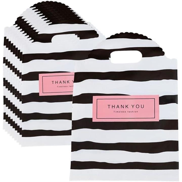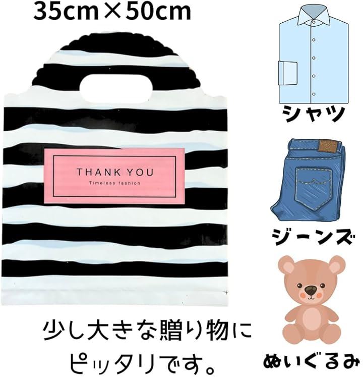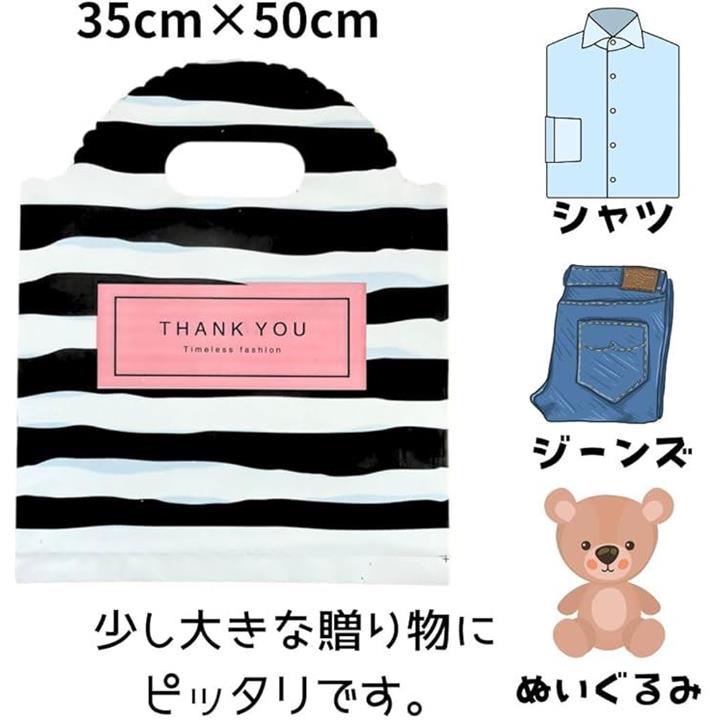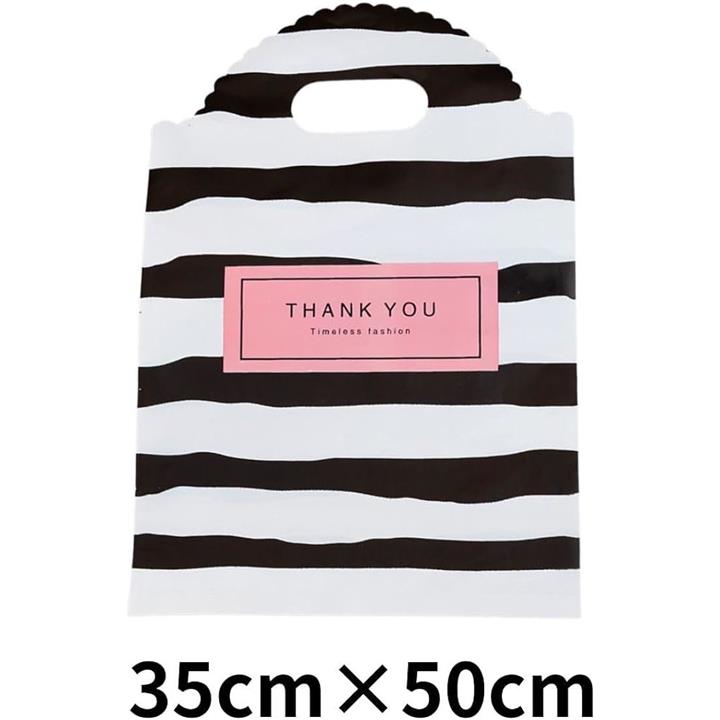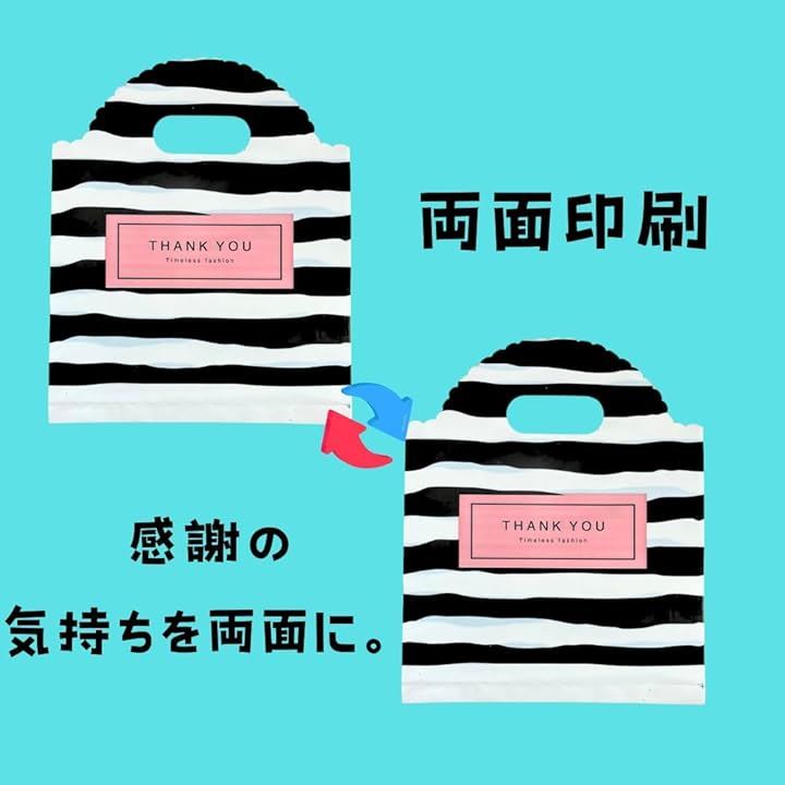 手提げ袋 ショップバッグ Thank you 100枚 ビニール袋 ギフトに最適 ボーダー