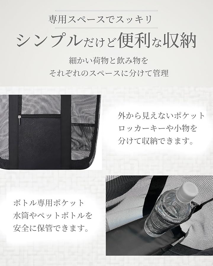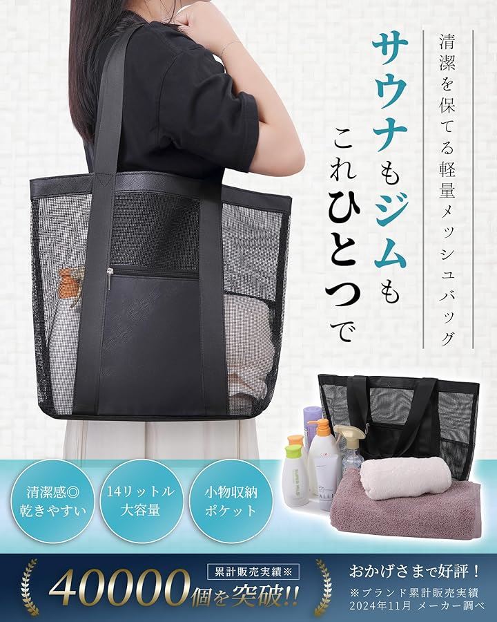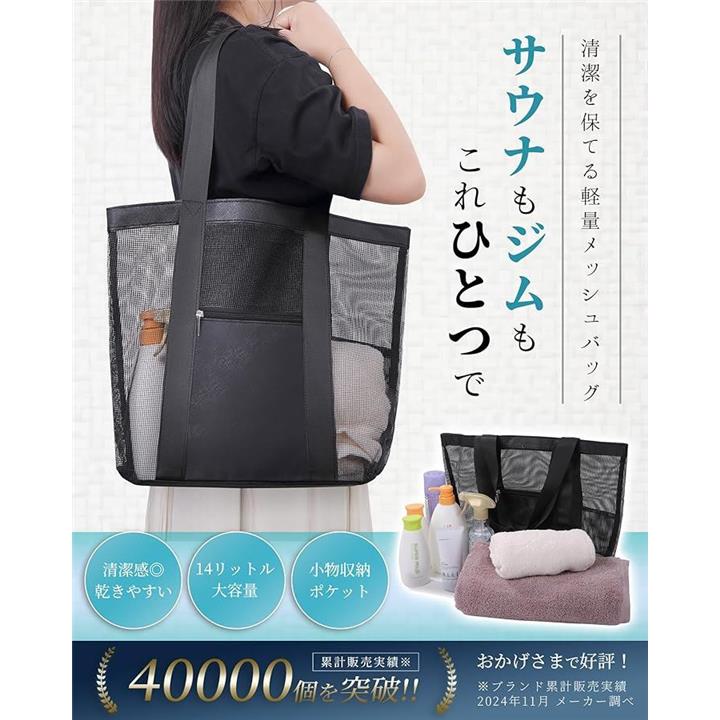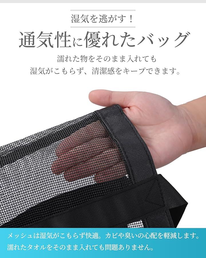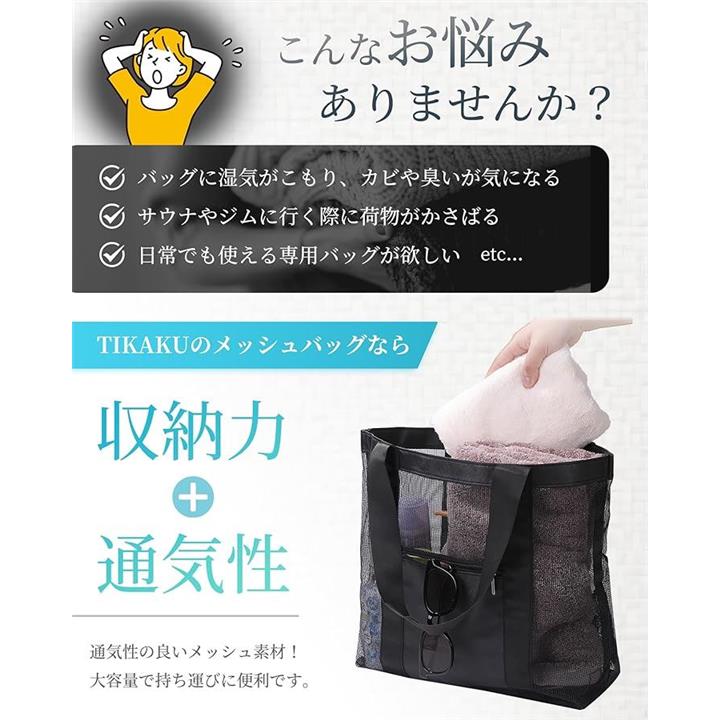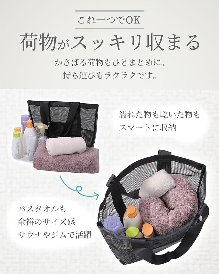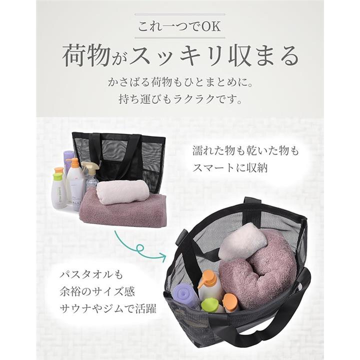 メッシュバッグ 軽量 大容量 通気xコンパクト収納 サウナ ジム 温泉 銭湯 スパ プール ビーチ スポーツ トートバッグ