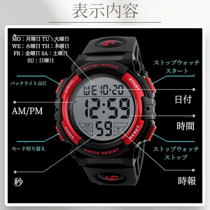 ケンアール 腕時計 子供 防水 デジタル 男子 アラーム付 ウォッチ かっこいい 男の子 子ども キッズ 小学生