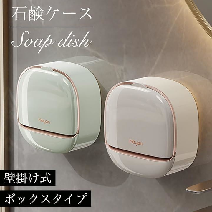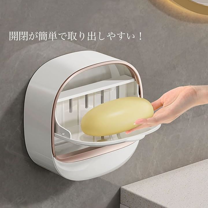 石鹸 ケース 壁掛け ボックス ホルダー 石鹸置き ソープケース ふた付き おしゃれ 粘着 取付板 キッチン 洗面所 浴室 バスルーム バス用品 お風呂