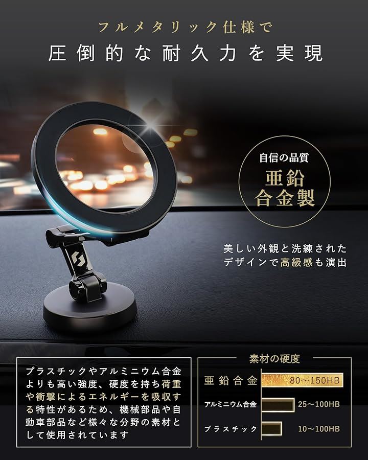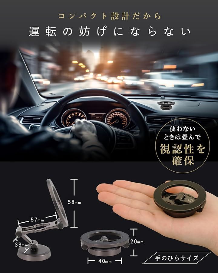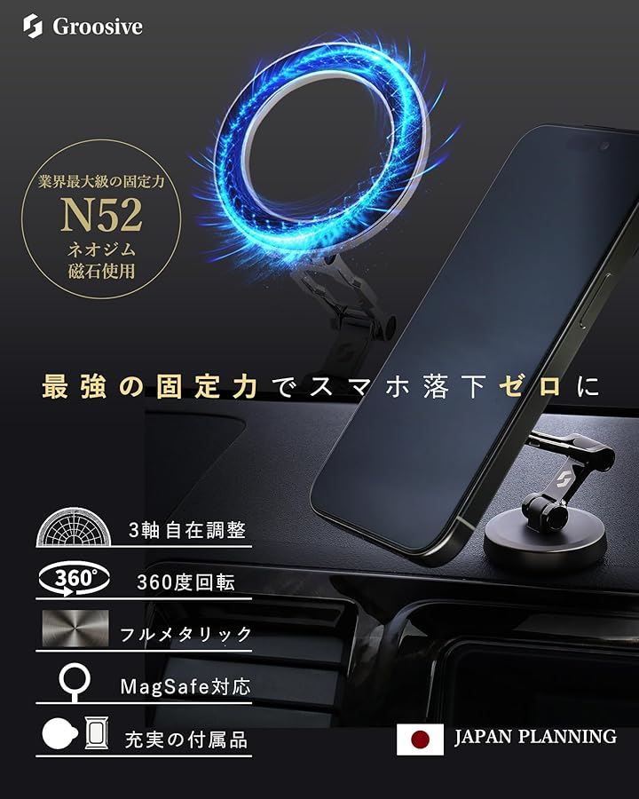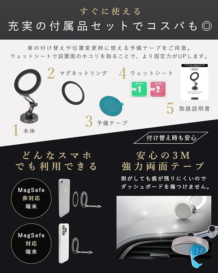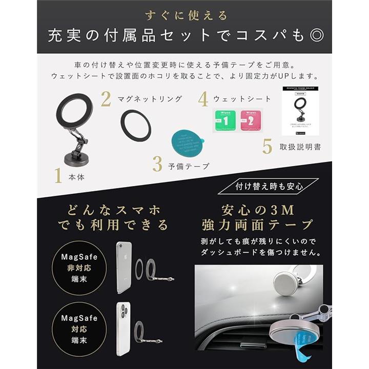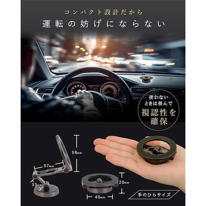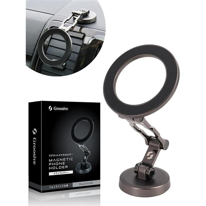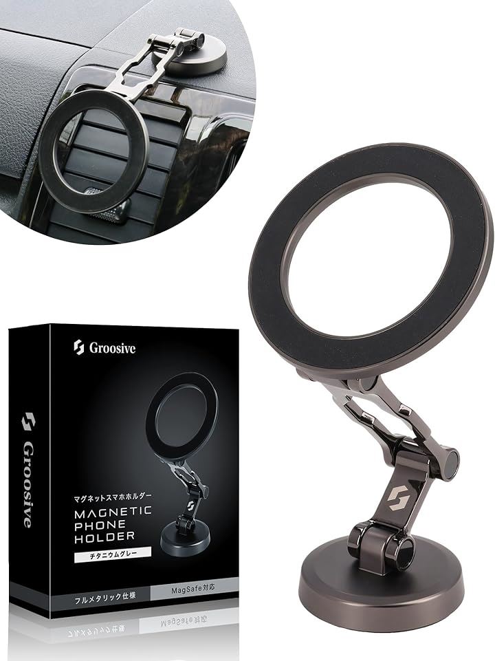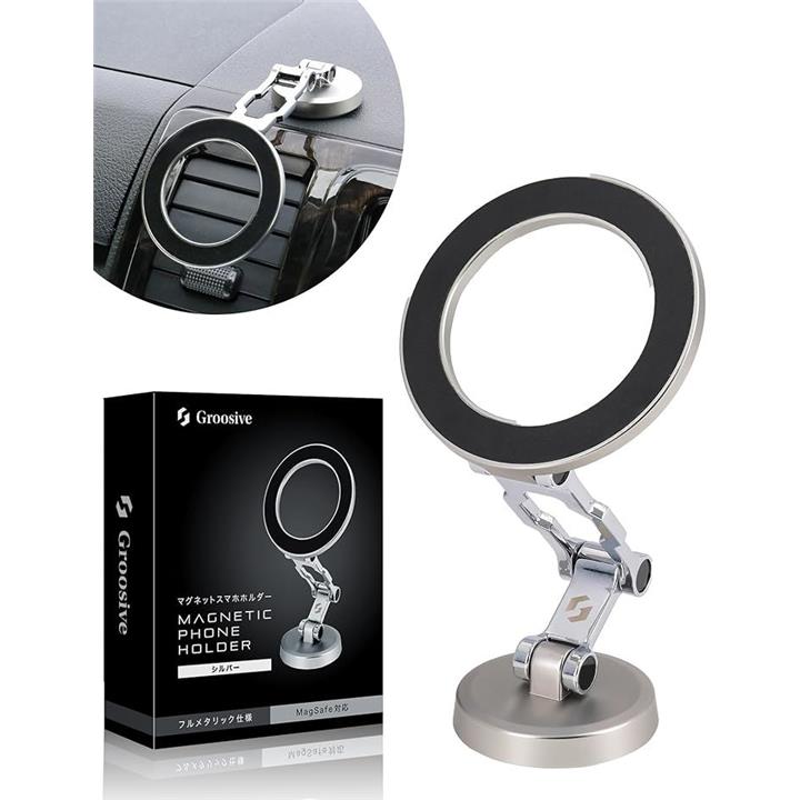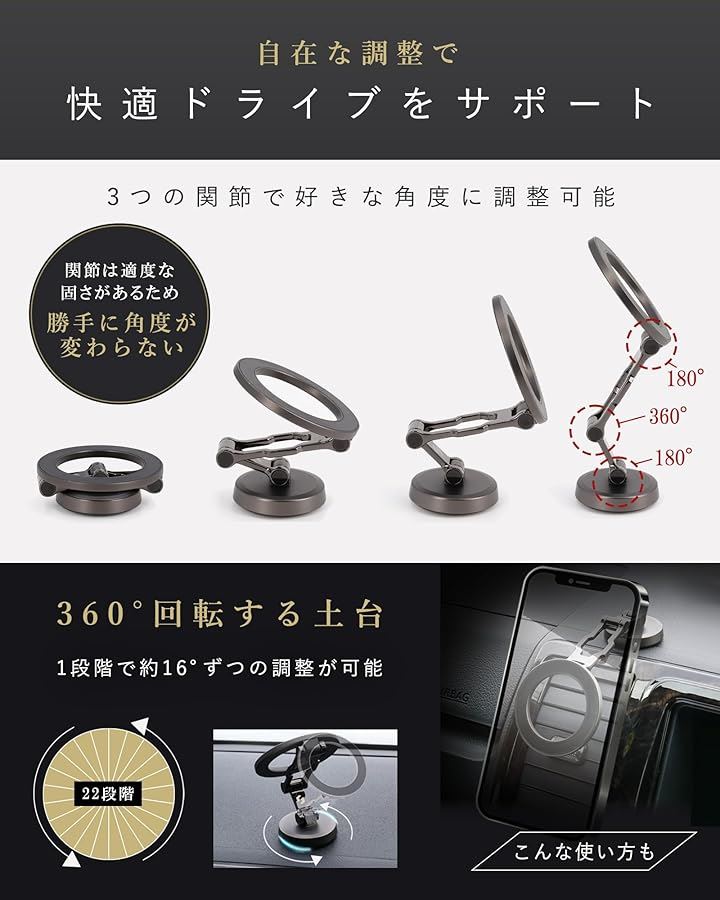 互換品 スマホホルダー 車 マグネット MagSafe対応 折り畳み 超強力磁石 3軸 360° 角度調整自由 亜鉛合金 スマホスタンド