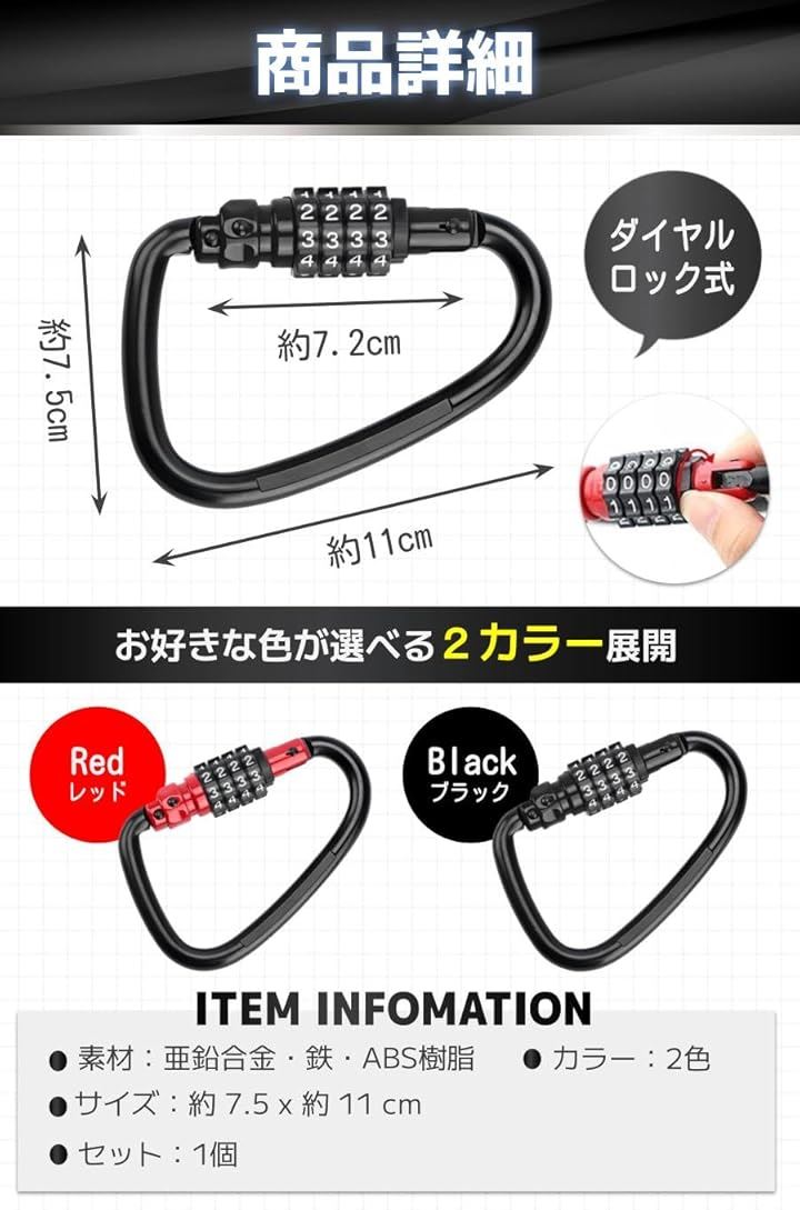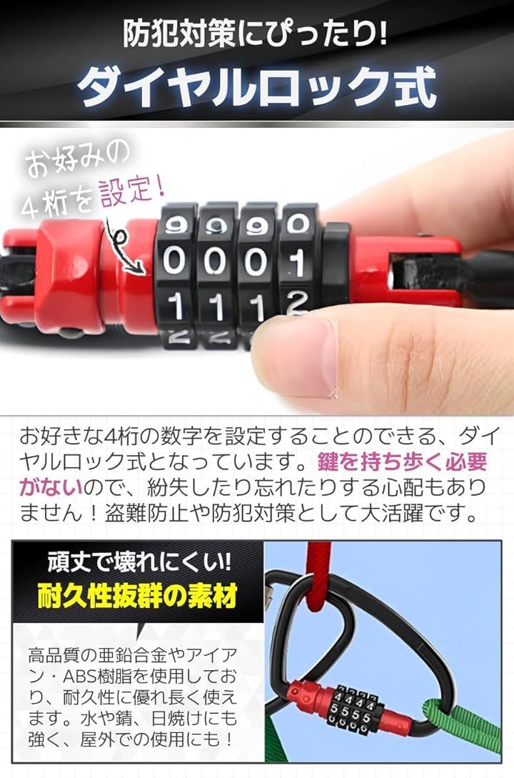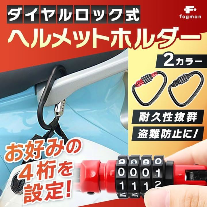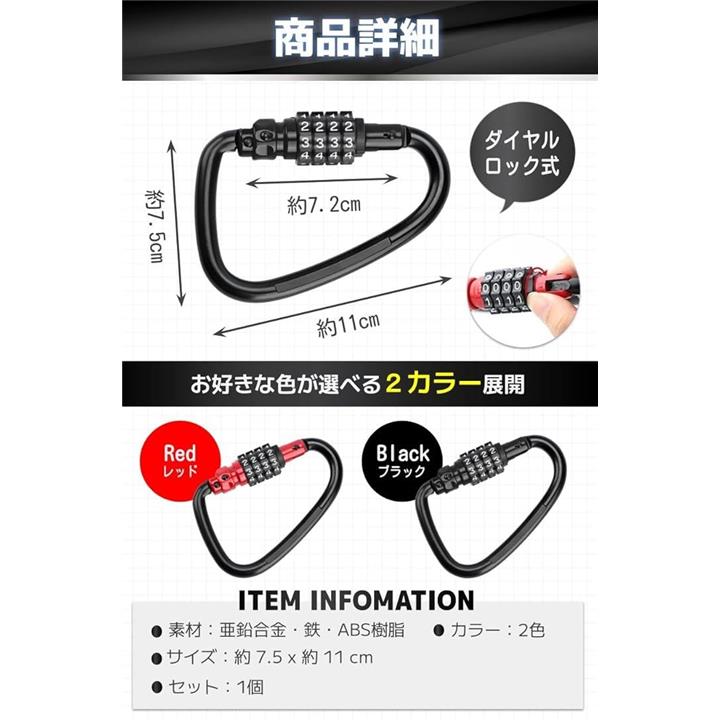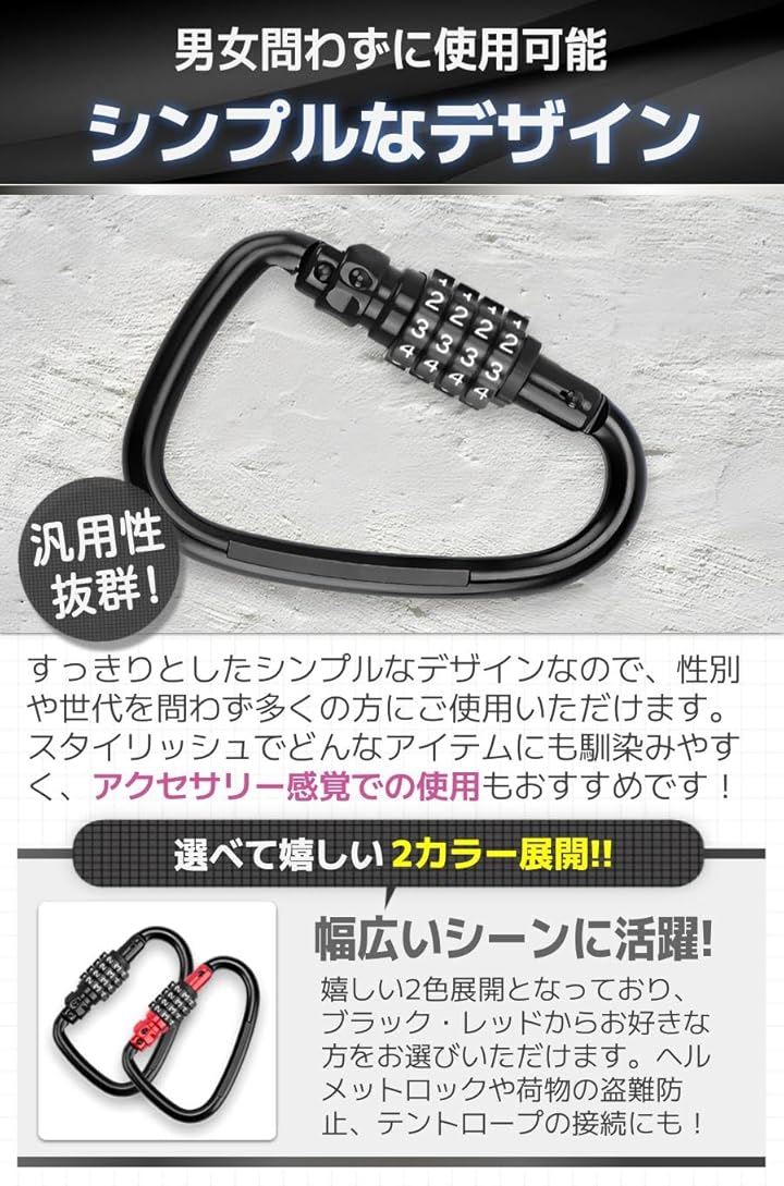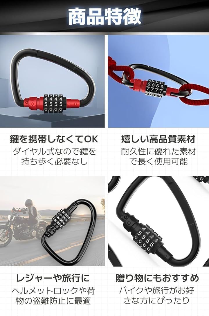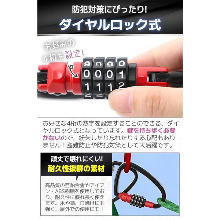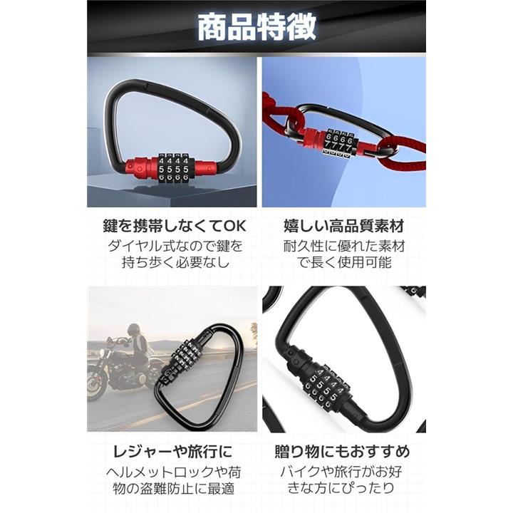 登山 ヘルメットホルダー ロック付き ダイヤルロック バイク 鍵 盗難防止 カラビナ