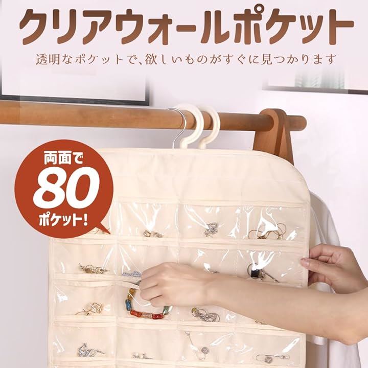 アクセサリー 収納 ウォールポケット 壁掛け 多機能ポケット 壁面収納 小物収納 省スペース 吊り下げ式80ポケット