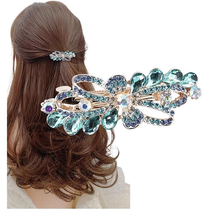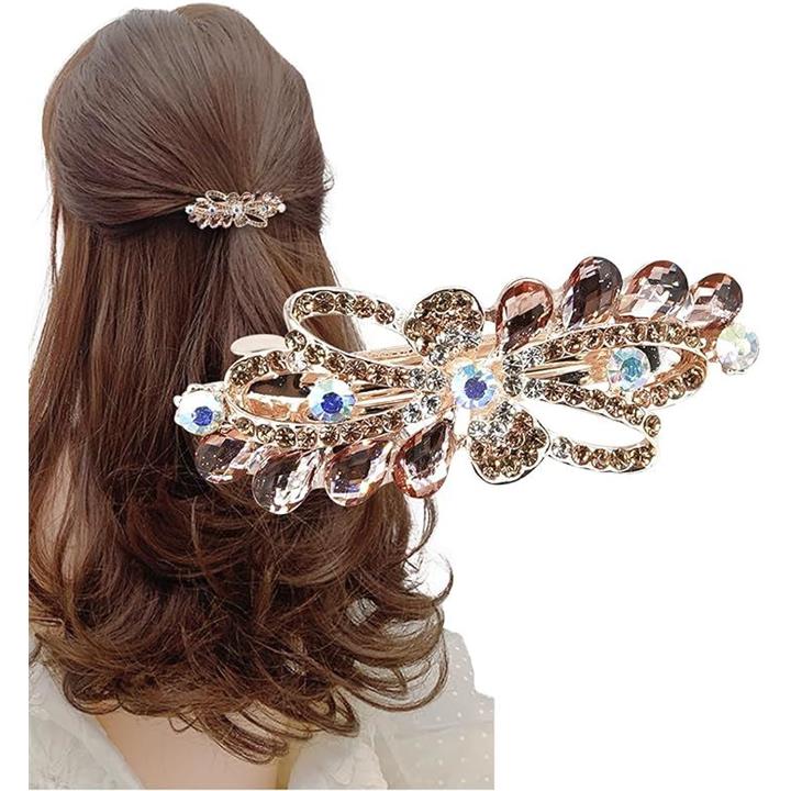 バレッタ ビジュー ストーン 金具 髪留め ヘアクリップ おしゃれ 大人 上品 ブーケ