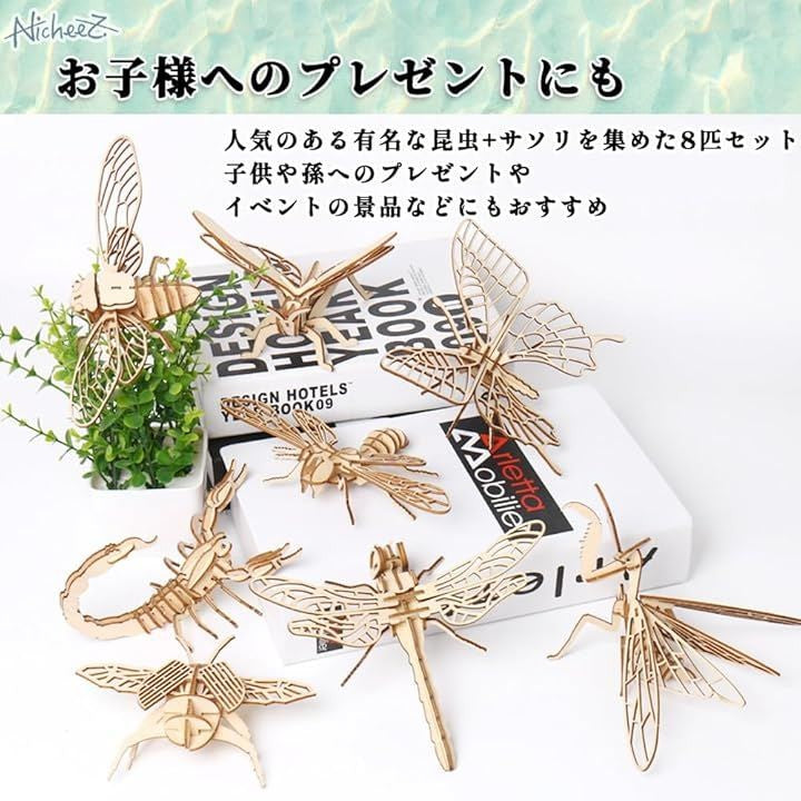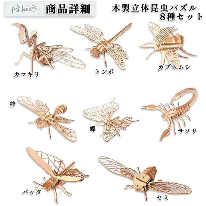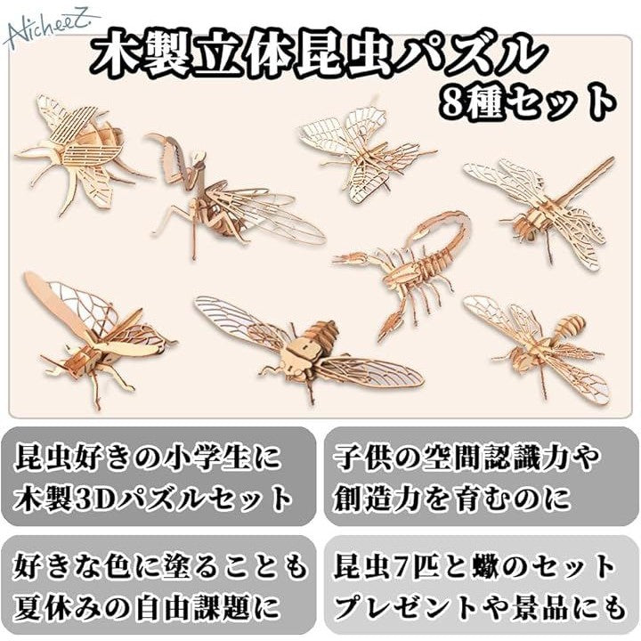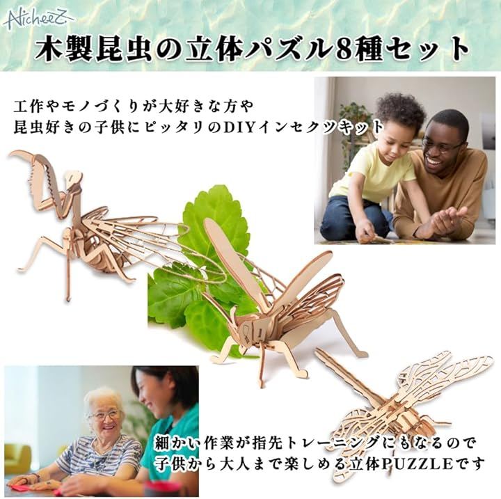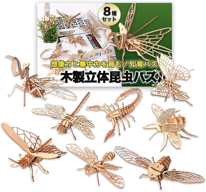 立体パズル 3D 木製 組み立てキット 昆虫 8種セット インテリア 模型 知育 ギフト