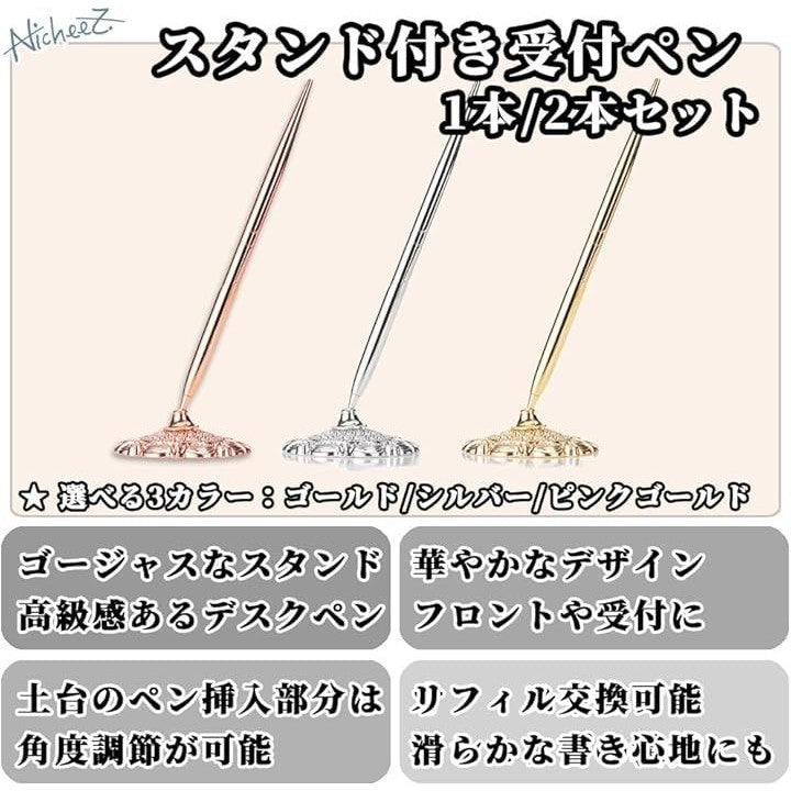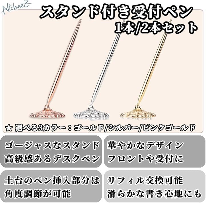 受付ペン 署名ペン デスクペン スタンド付 ボールペン ホテル フロント 結婚式 ウェディング 応接間