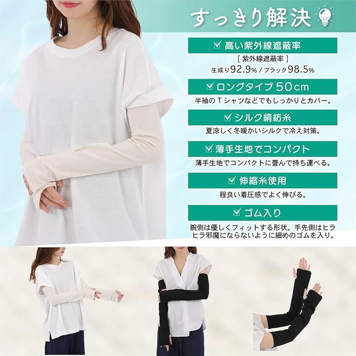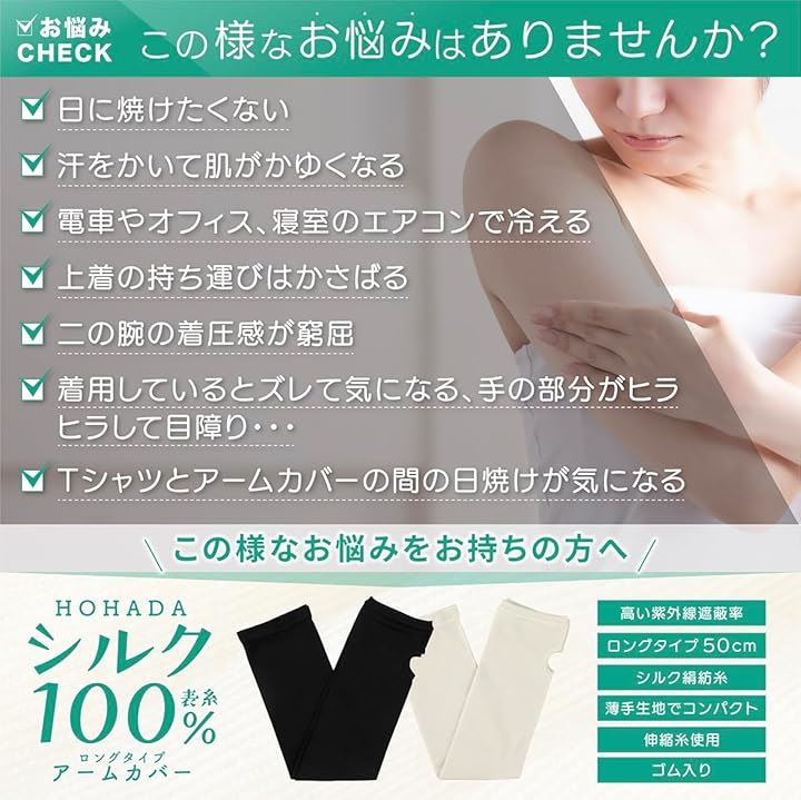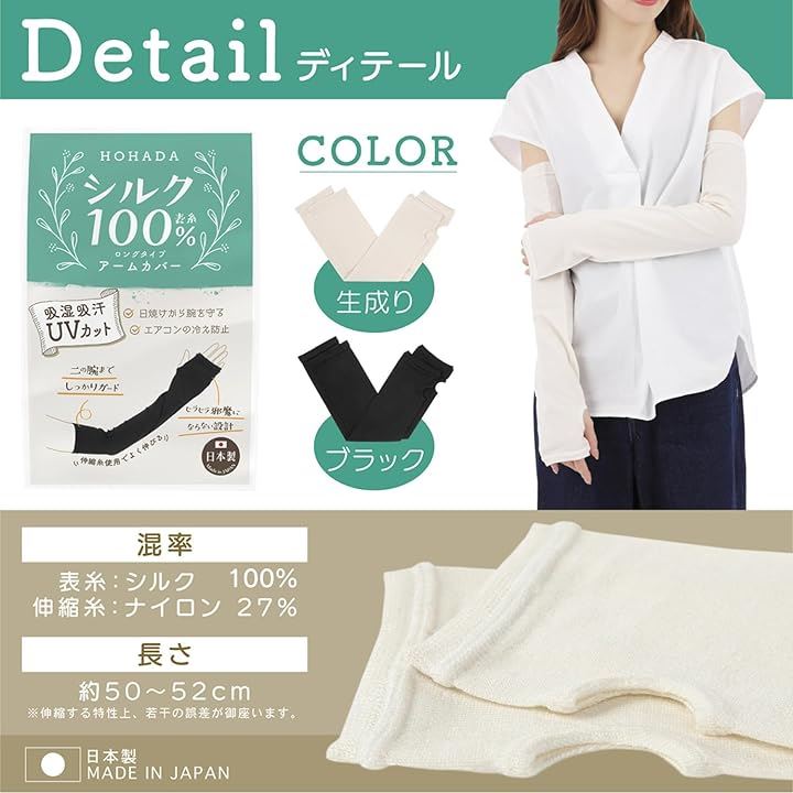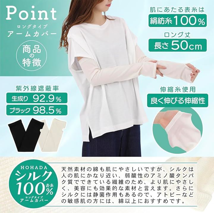 アームウォーマー シルク uvカット 日本製 レディース 絹 日焼け止め アームカバー ロングタイプ