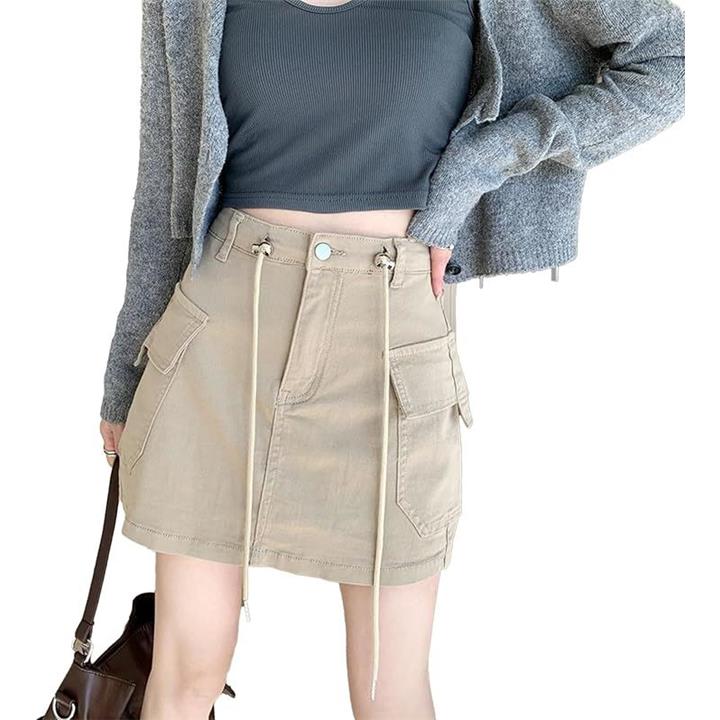[Takusan Shopping] ミニスカート セクシー ミリタリー カーゴ 台形スカート 膝丈 カジュアル ショート インパン付き タイト サバゲー 韓国 |