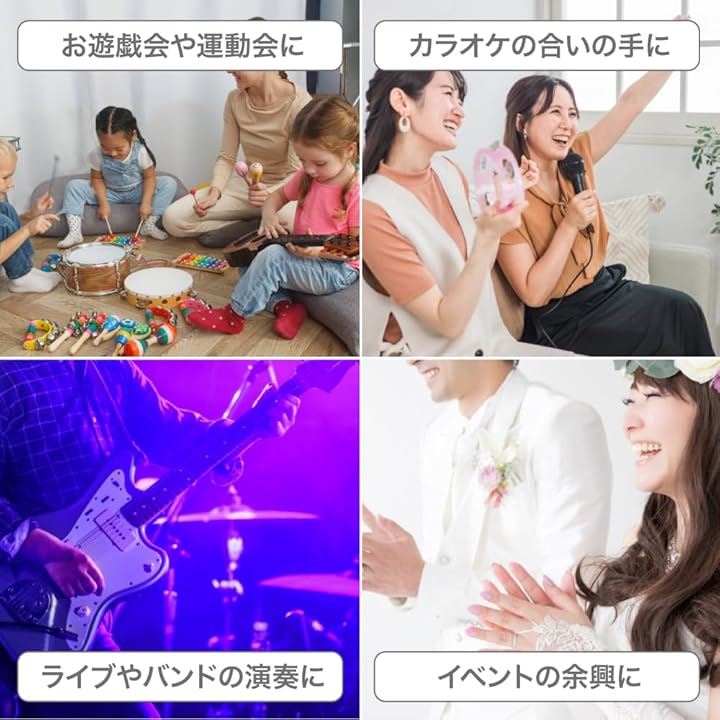 AllBright タンバリン 皮付き 打楽器 丸型 木製 演奏 音楽教育 発表会 盛り上げ パーティー 子供 大人 15cm