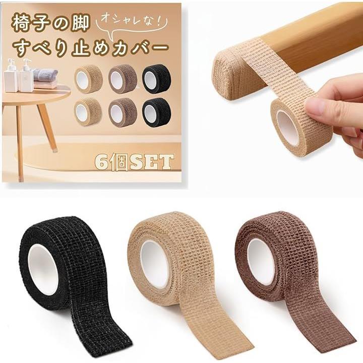 「滑り止め効果」自着性テープが施されているため、椅子の脚にしっかりと固定され、滑り止め効果を発揮します。