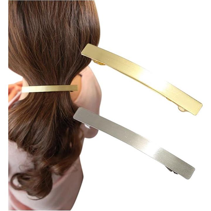 バレッタ しっかり留まる 髪留め ヘアクリップ おしゃれ 大人 ライン シンプル 細め 2個セット