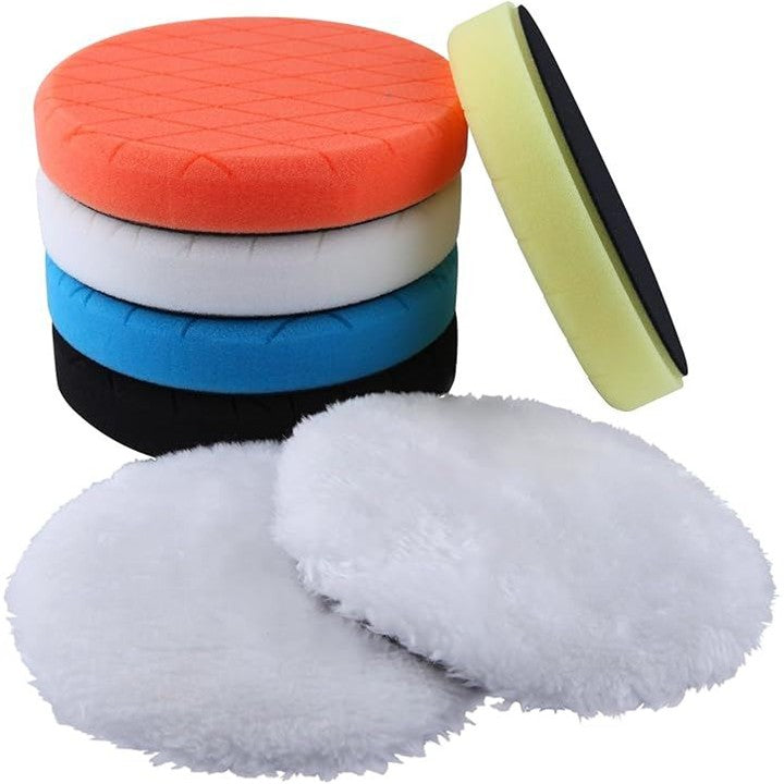7個セット スポンジパット 6インチ ポリッシャー バフ スポンジバフ ウールバフ 羊毛バフ 電動ポリッシャー用 研磨スポンジ バフ研磨パッド 荒中細 ポリッシングパッド 仕上げバフ 車用