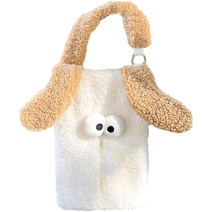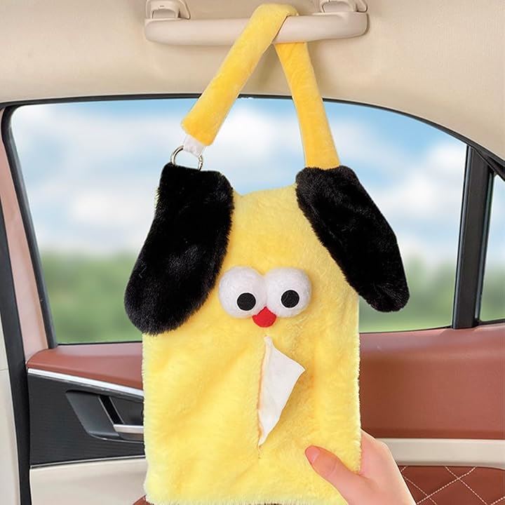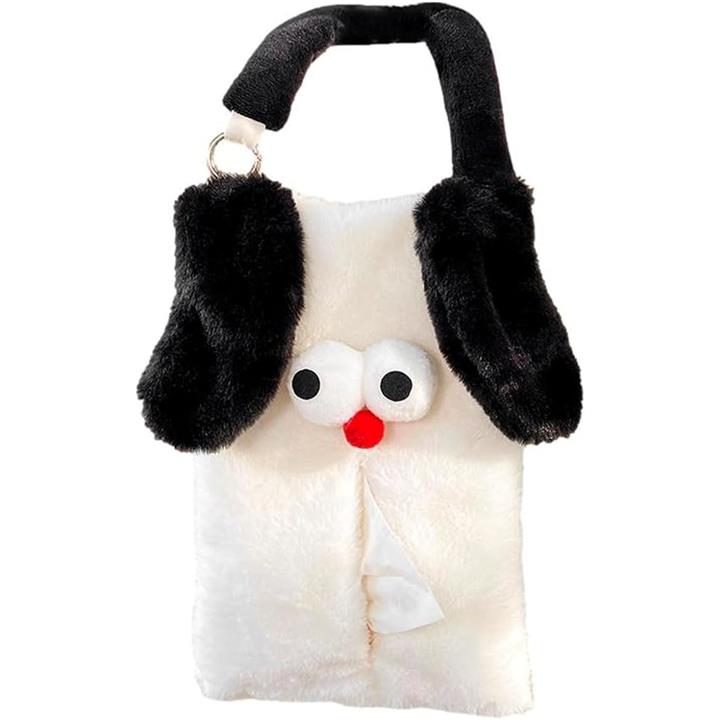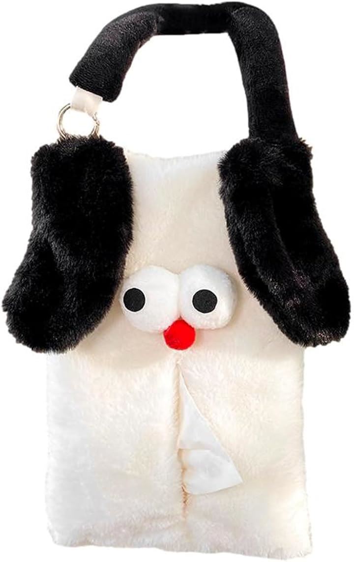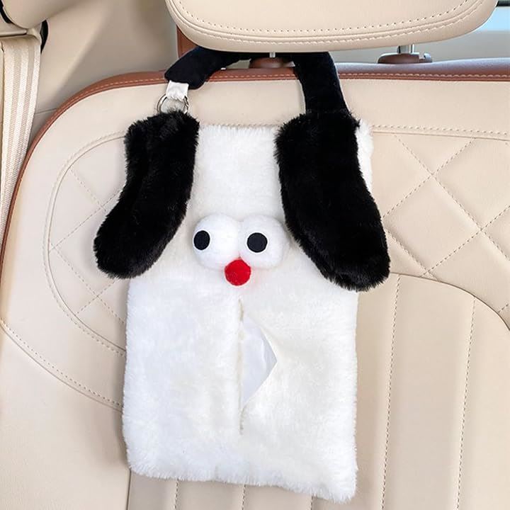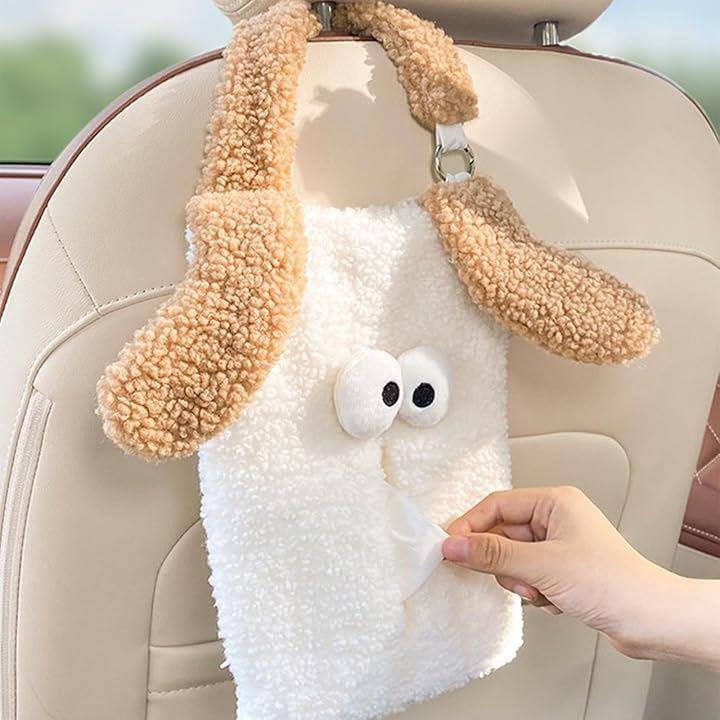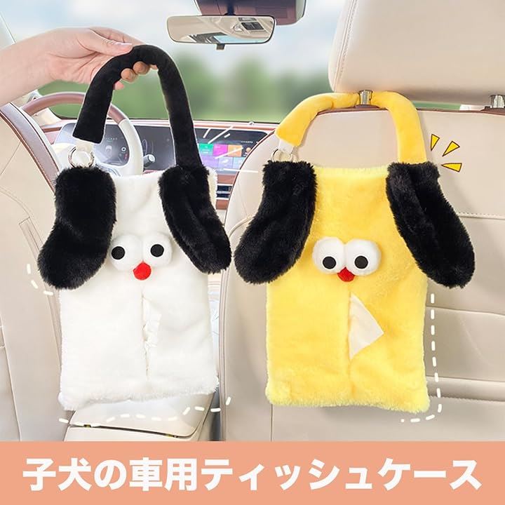 ティッシュケース 子犬 引っ掛け 車用 かわいい ヘッドレスト 吊り下げ カー 用品 アクセサリー 詰め替え ボックス ホルダー ふわふわ モコモコ