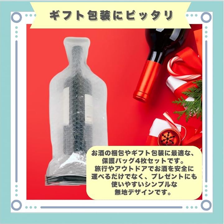 ワインボトル 保護バッグ 持ち運び 保存 漏れ防止 耐衝撃 48cmx18cm 4枚セット