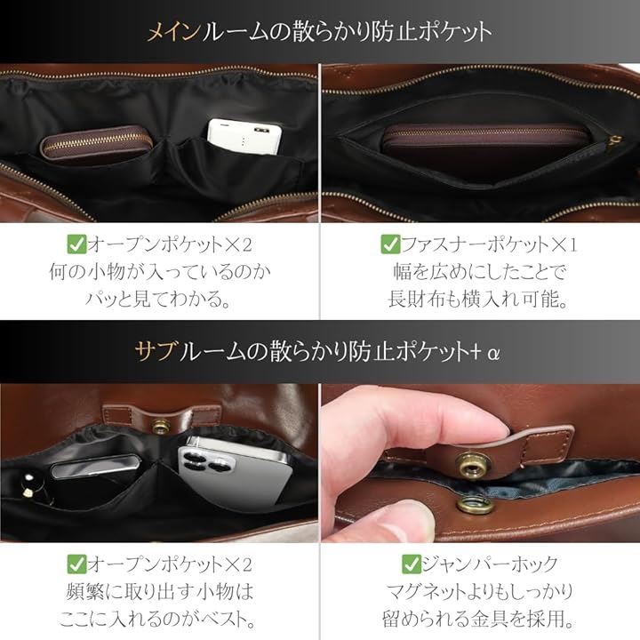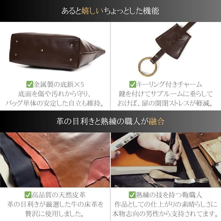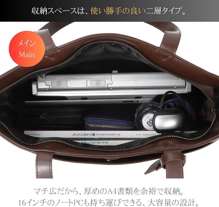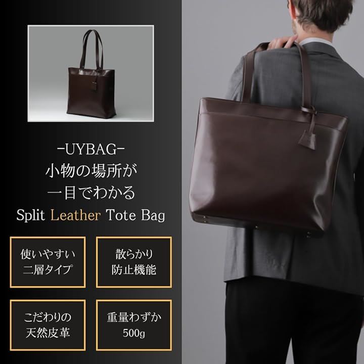 小物の場所が一目でわかる トートバッグ メンズ ビジネスバッグ 皮 革 自立 大容量 uy14