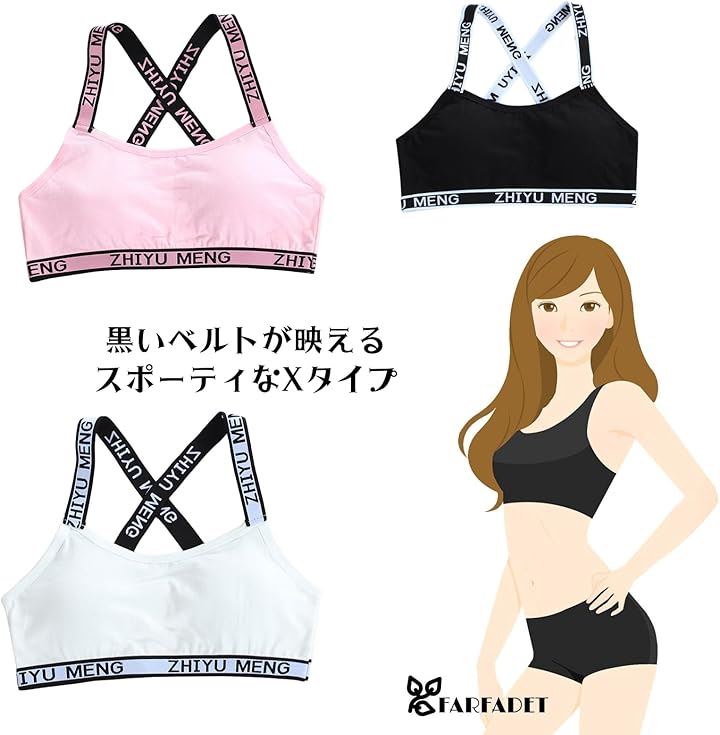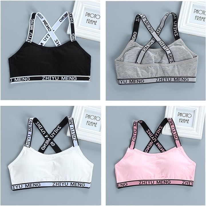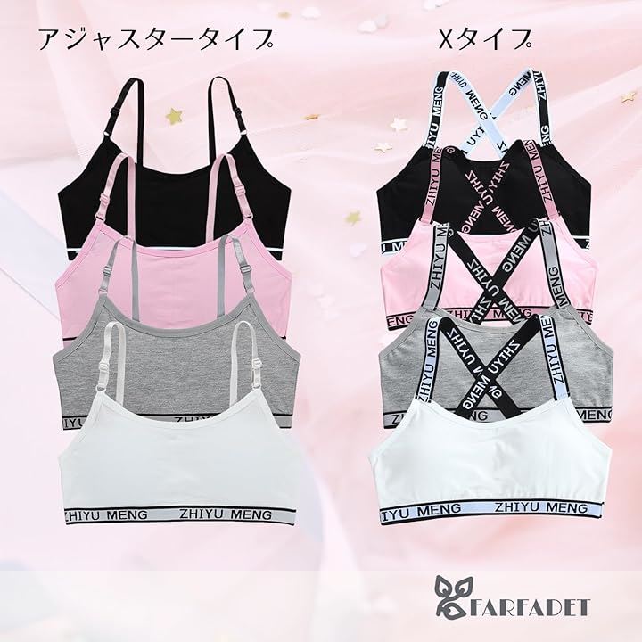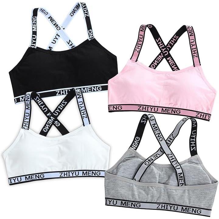 スポーツブラ ハーフトップ ジュニア ブラジャー カップ付 インナー ガールズ ティーンズ 4枚組 フィットネス 部活 デイリー 中学生 小学生 下着 スクール ふんわり カップ付き 吸汗 ファースト 揺れにくい ジュニアブラ 成長期 バスト 4色