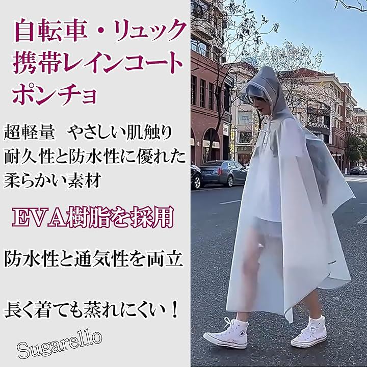 レインポンチョ 男女兼用 レインコート リュック対応 自転車用 フリーサイズ 軽量 蒸れない EVA素材 雨合羽 サイクル仕様 通勤通学 レインウェア