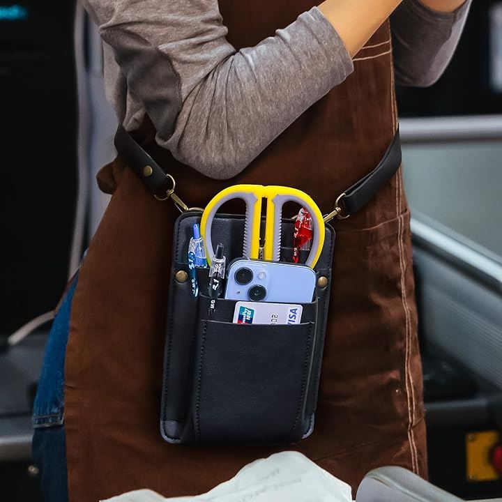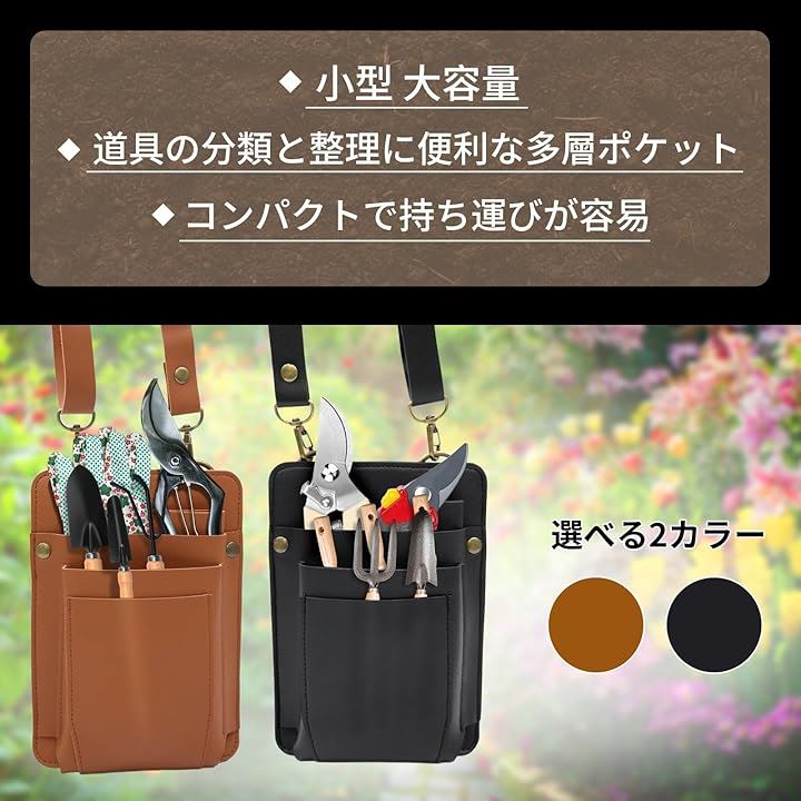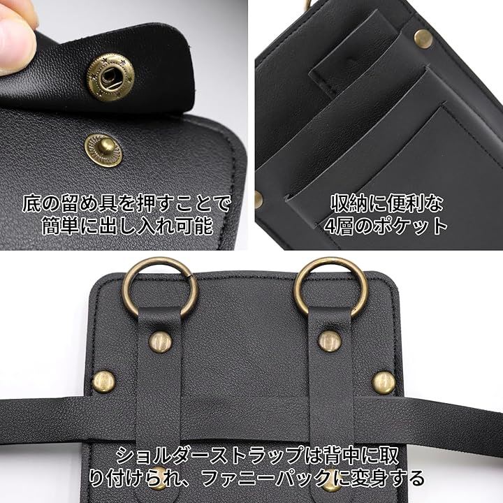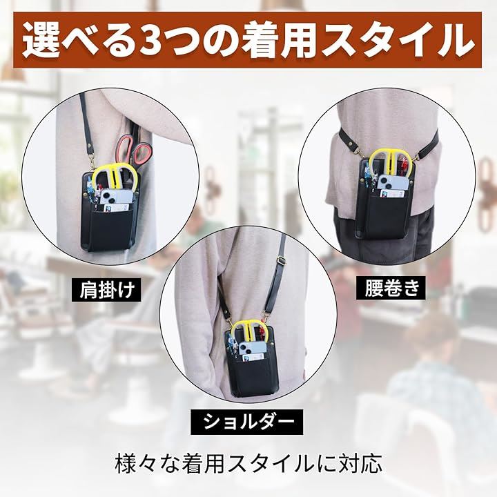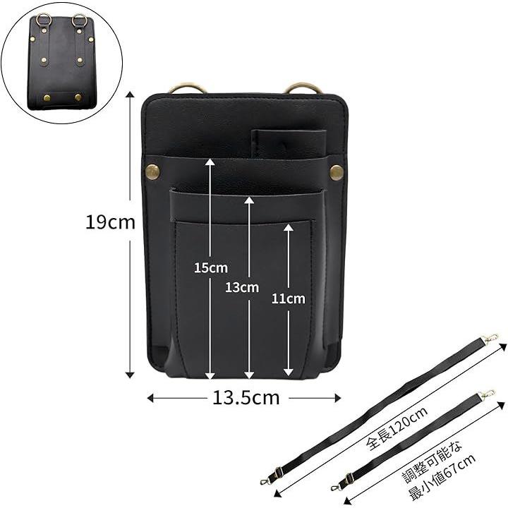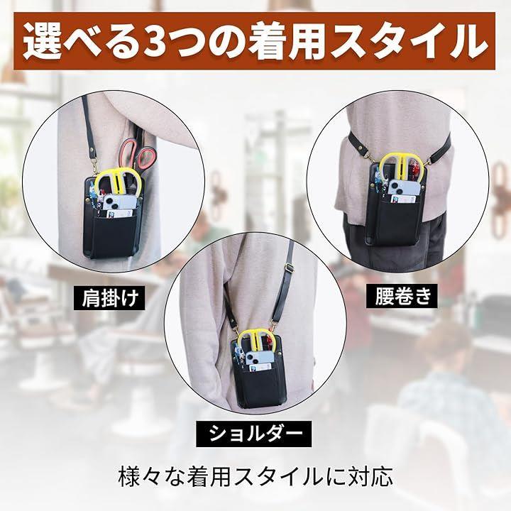 ガーデニングポーチ ブラック 19x13.5cm シザーケース おしゃれ フローリストケース 剪定ばさみケース 67-120cm 調節可能ショルダーベルト園芸 花屋 ハサミケース ウエストポーチ 美容師 腰掛けポーチ
