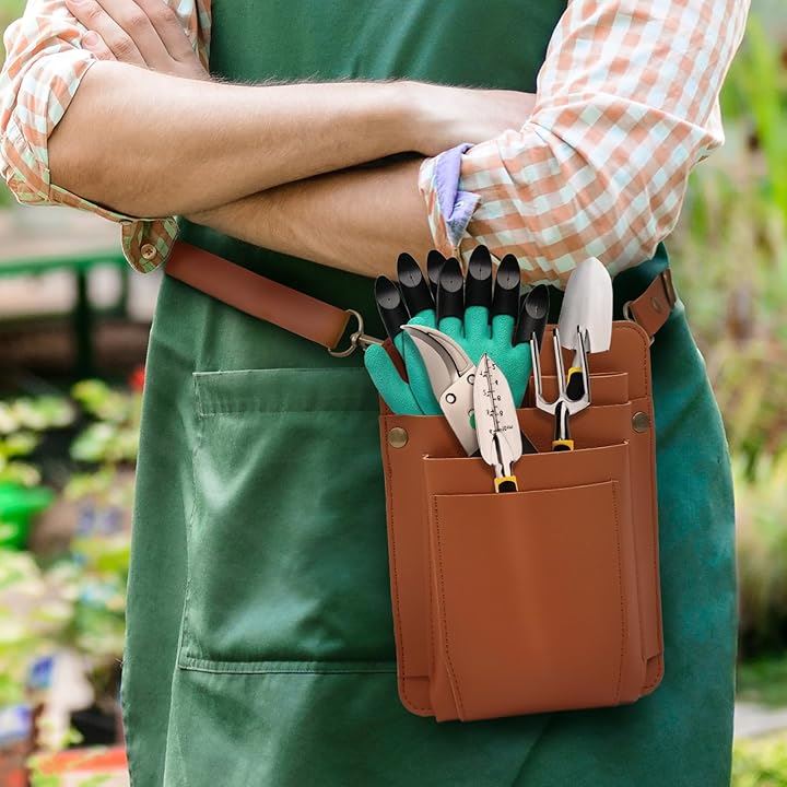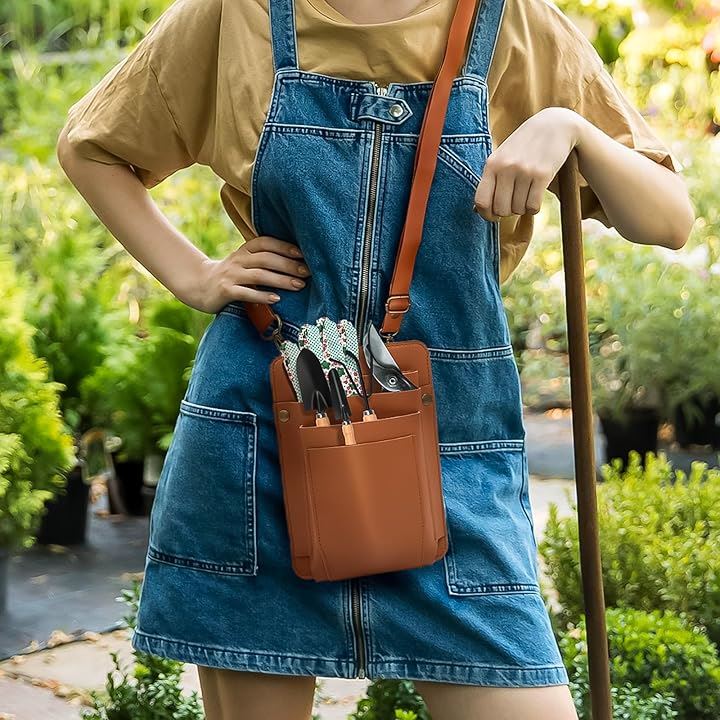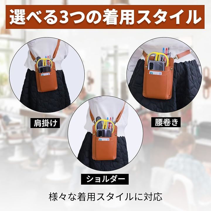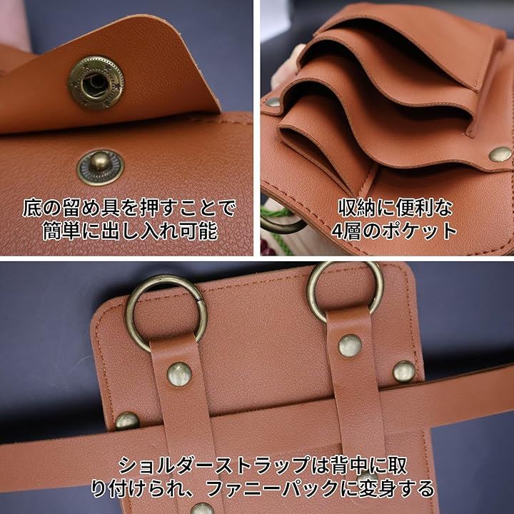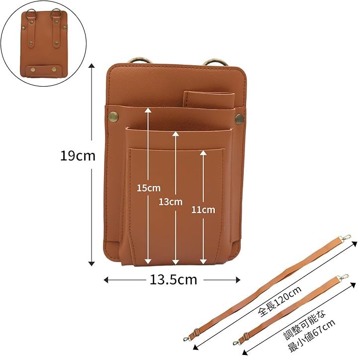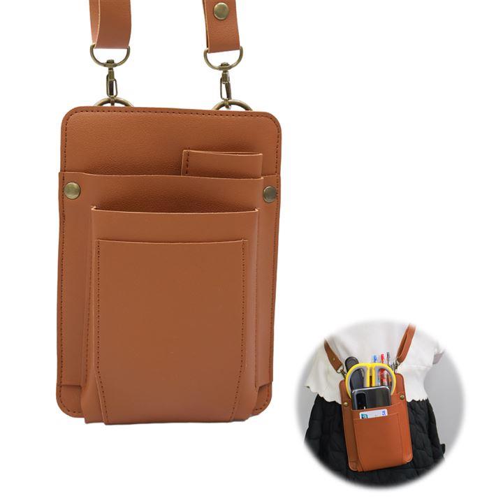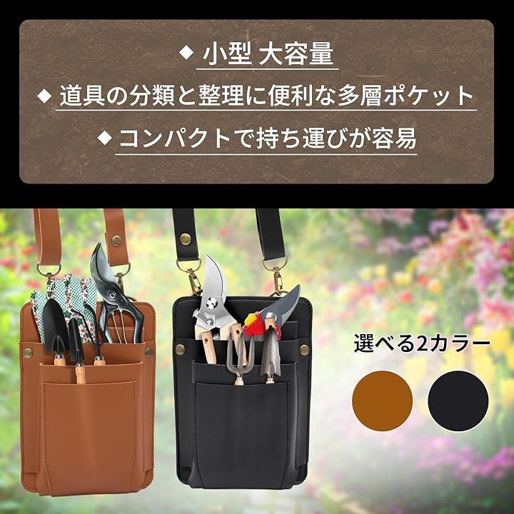 ガーデニングポーチ ブラウン 19x13.5cm シザーケース おしゃれ フローリストケース 剪定ばさみケース 67-120cm 調節可能ショルダーベルト園芸 花屋 ハサミケース ウエストポーチ 美容師 腰掛けポーチ