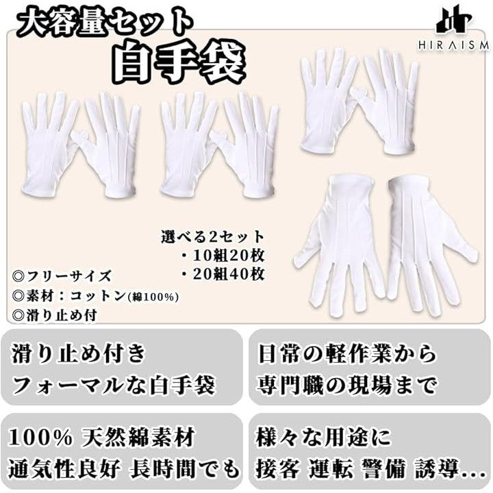 白手袋 フォーマル 滑り止め付き 綿 無地 薄手 フリーサイズ 背抜き手袋 運転 結婚式 礼装 式典 警備
