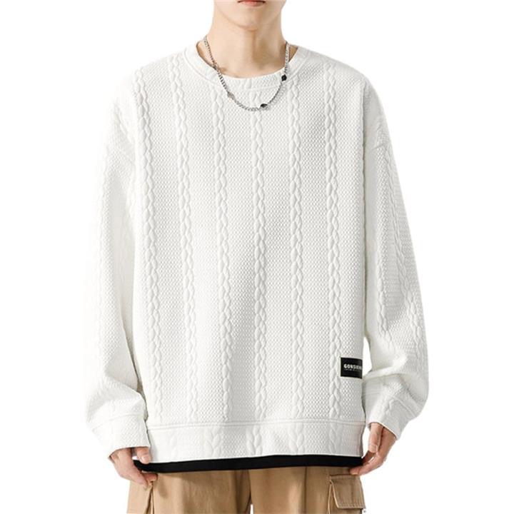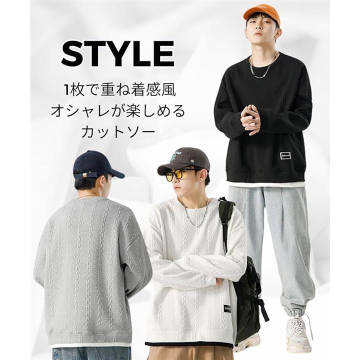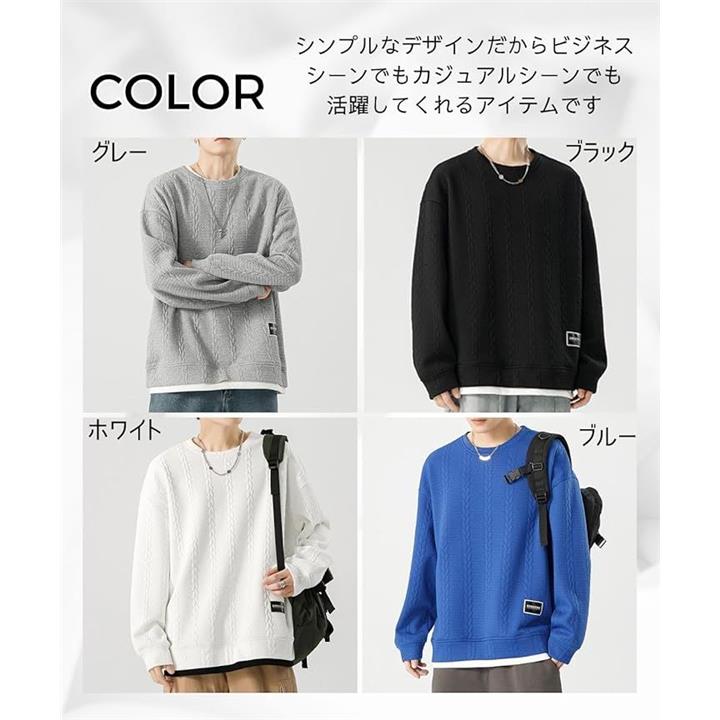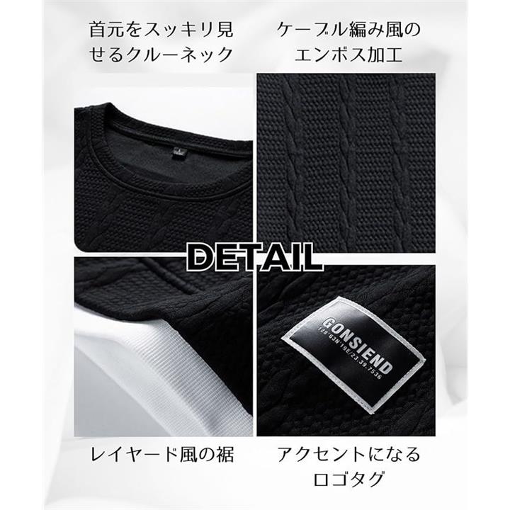 [Four leaf] 「おしゃれxスッキリ」 重ね着風 メンズ トレーナー トップス カットソー 長袖 スウェット 長袖tシャツ ストリート系 ロンティー レイヤード 丸首 エンボス加工 無地 |