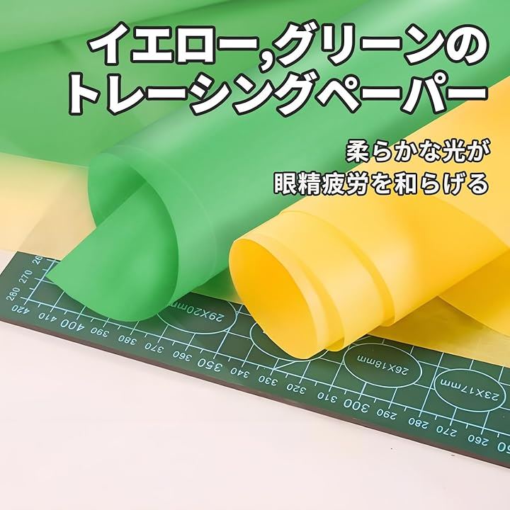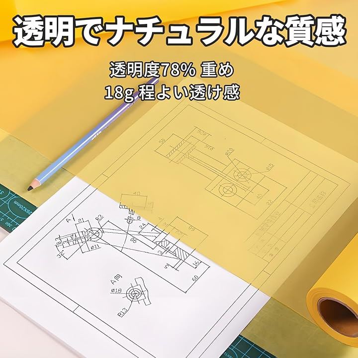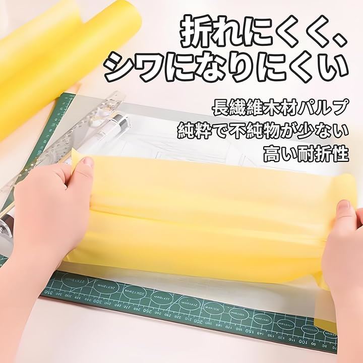 グラシン紙 A4 トレーシングペーパー 長さ46m 幅30.5cm 転写紙 ロール紙 複写 写し絵 型紙 半透明 つや消し 建築 設計 デザインに最適 イエロー