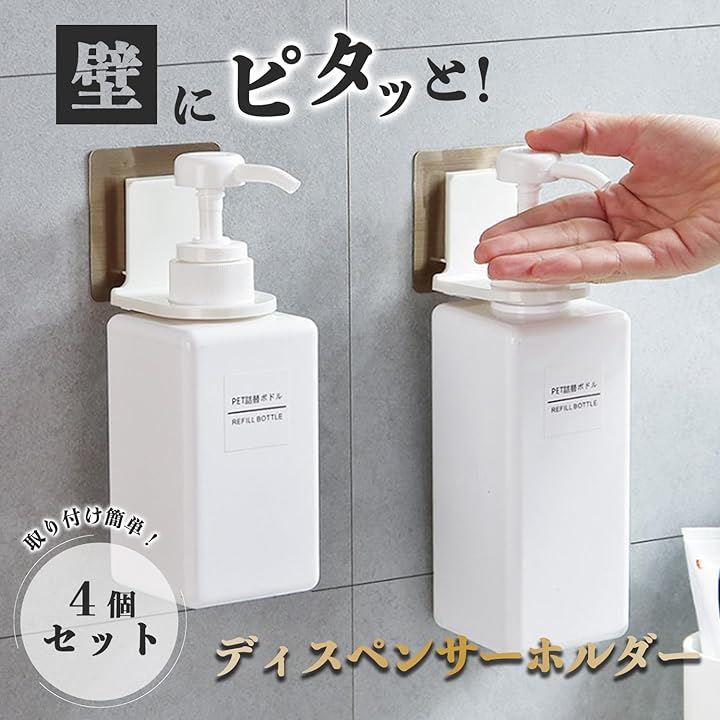 ディスペンサーホルダー 浮かせる収納 お風呂 吊り下げ シャンプー 吊るす ハンドソープ マグネットディスペンサー
