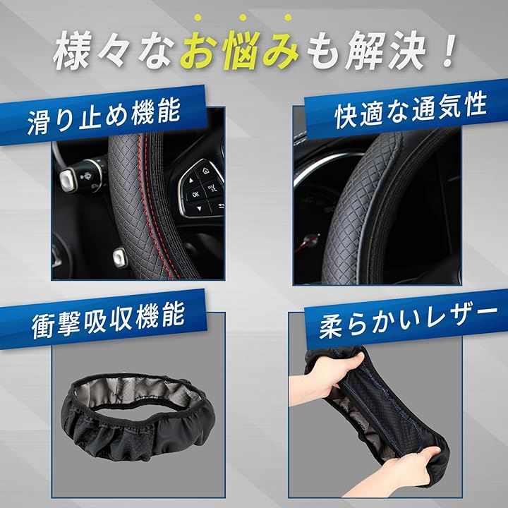 互換品 ハンドルカバー 軽自動車 sサイズ ステアリングカバー mサイズ レザー ハスラー 等 ハンドル直径36~39cm対応 汎用