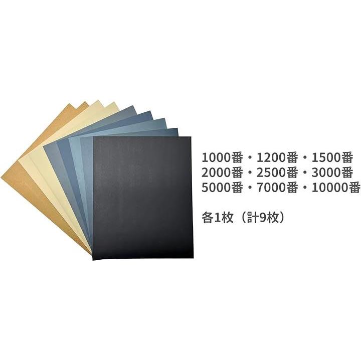 紙やすり/耐水ペーパー大判サイズ 1000番 1200番 1500番 2000番 2500番 3000番 5000番 7000番 10000番 各1枚