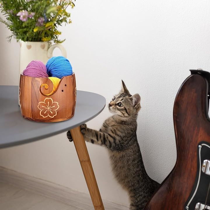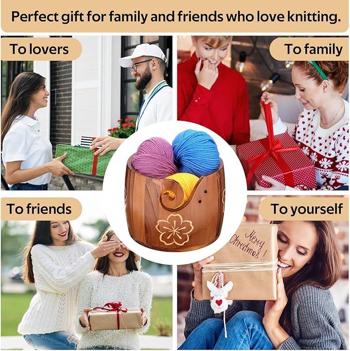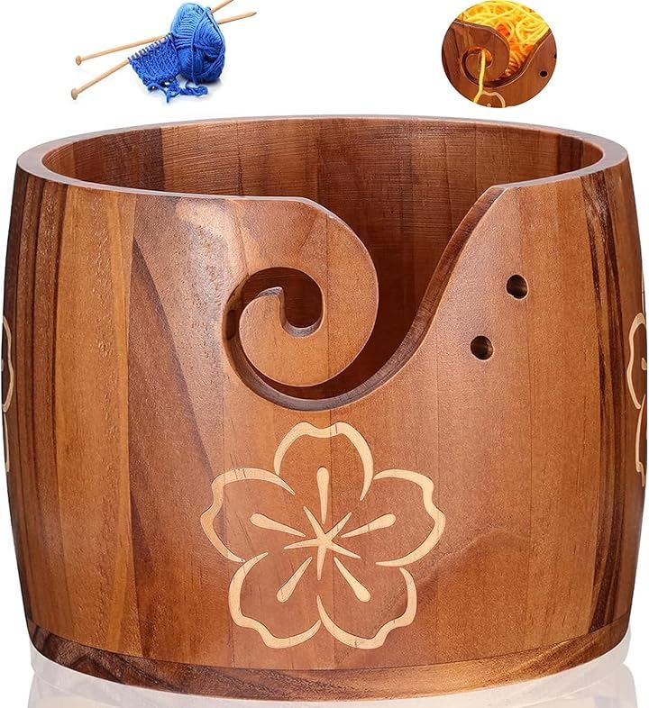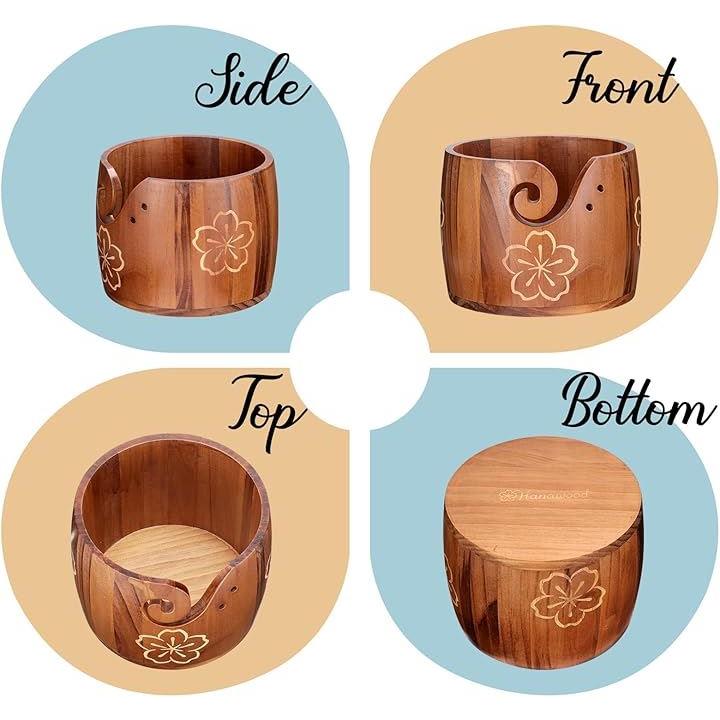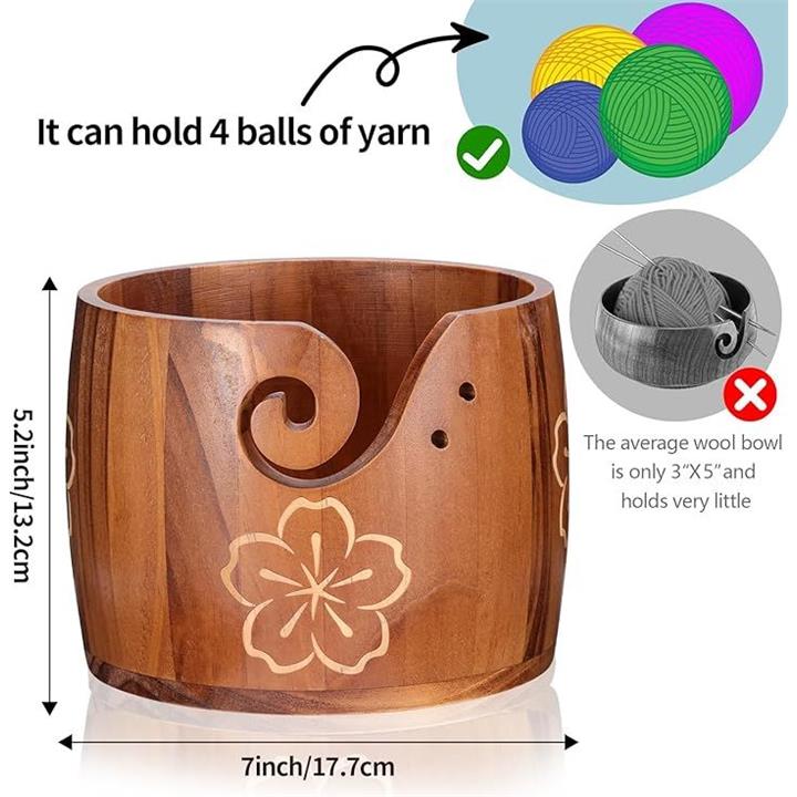 毛糸ボウル パイン材 ユニークなデザイン かぎ針編みボウル 毛糸ホルダー 編み物 マクラメ クラフト用品 編み物愛好家へのギフトに