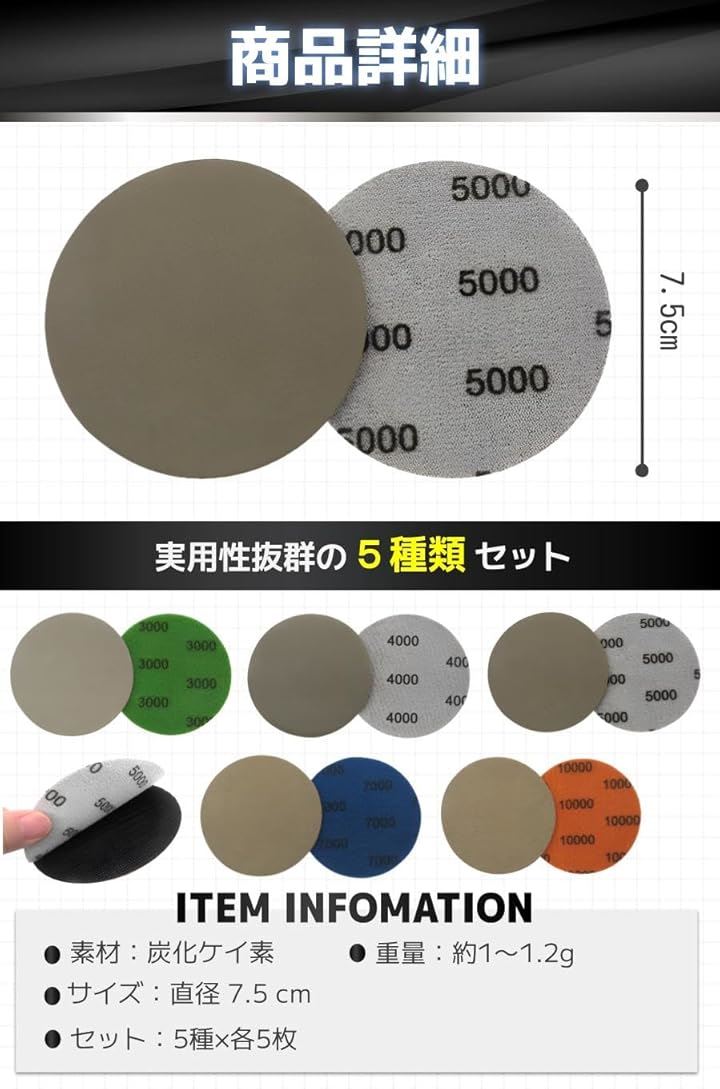 耐水ペーパー #3000#4000#5000#7000 10000 各5枚セット