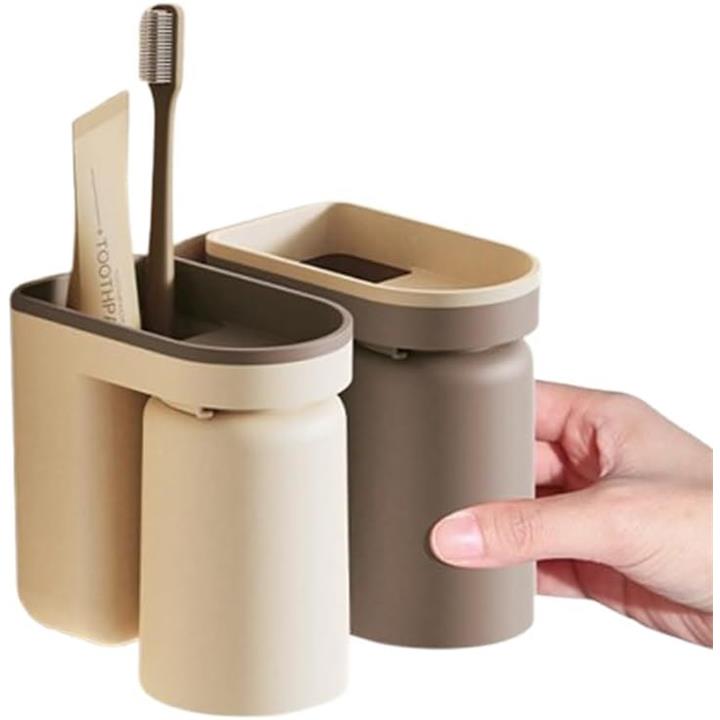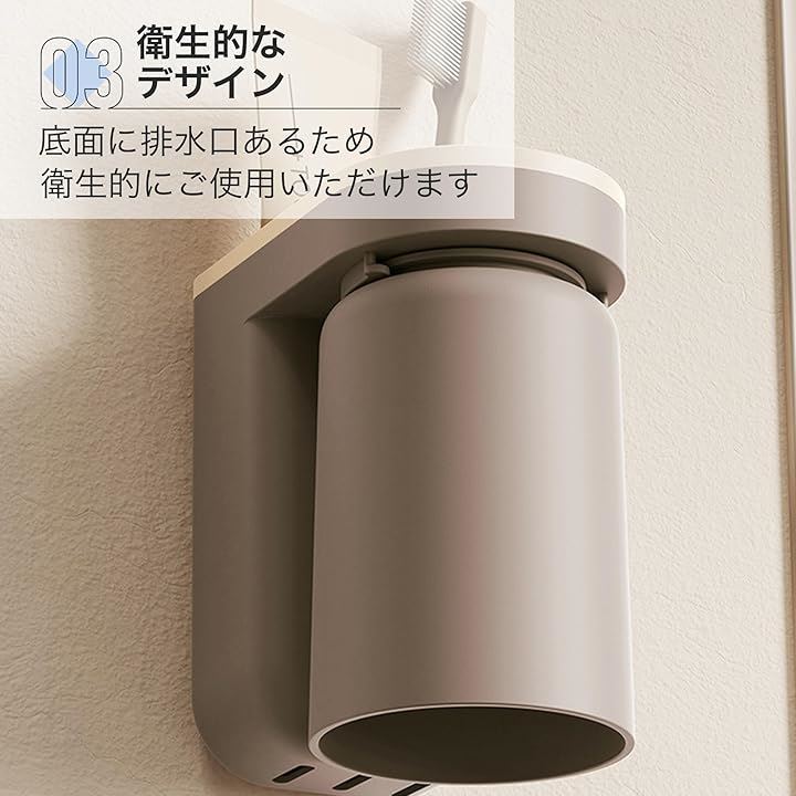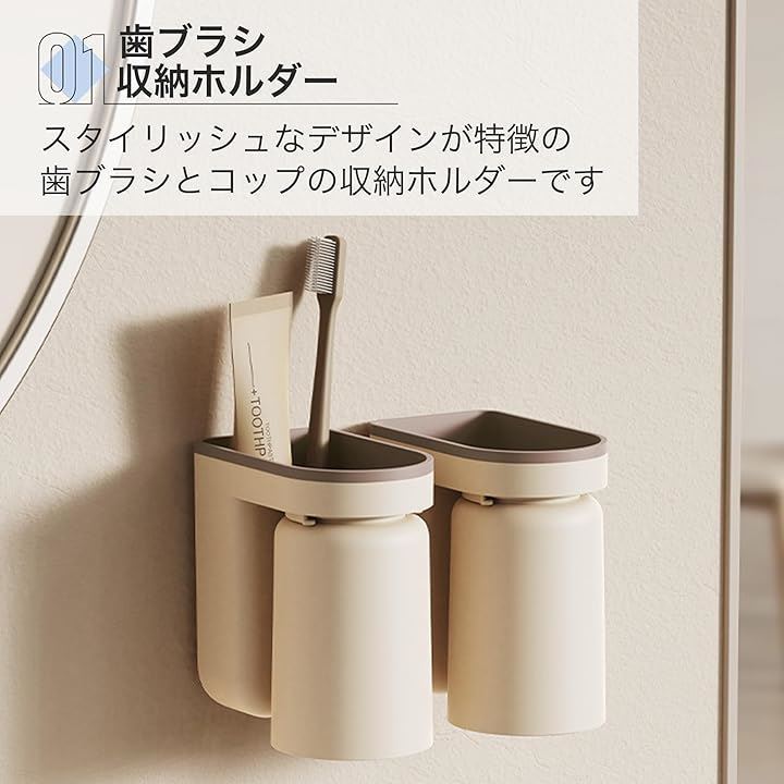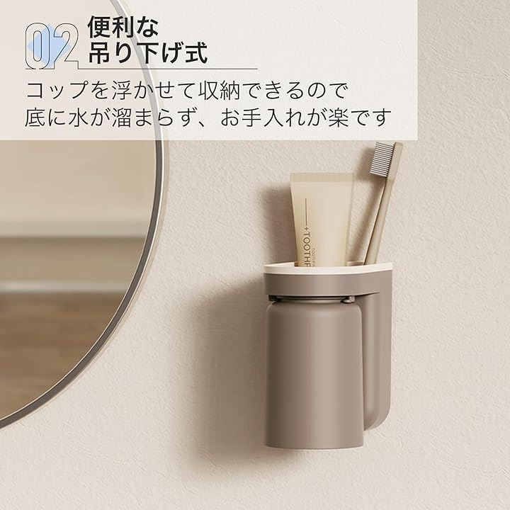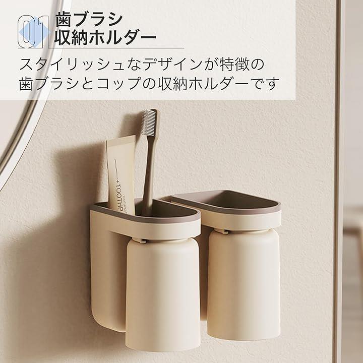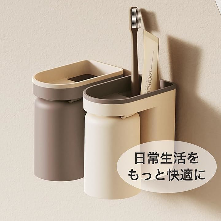 歯磨きコップ 壁掛け おしゃれ 穴あけ不要 プラスチック 省スペース 11x6.5x12.5cm 2個セット