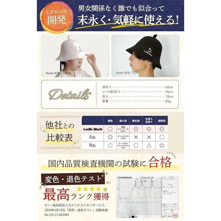 YouTuber監修 サウナハット ニュージーランド産 メリノウール 100% シームレス 繋ぎ目なし 破けにくい 清潔 衛生的 手洗い 水洗い 抗菌 消臭 防臭 遮熱性 肌触り さらさら ユニセックス 可愛い シンプル