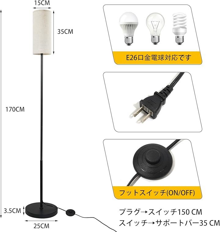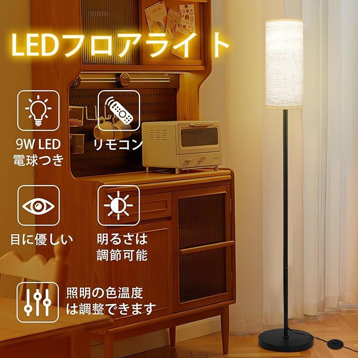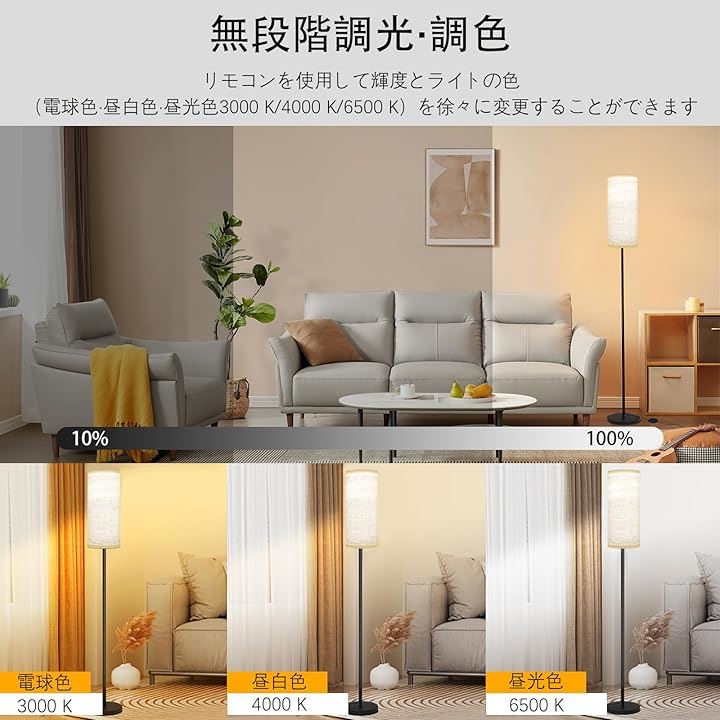 フロアランプ 間接照明 9WスマートLED電球 無段階調光・調色 リモコン付き ソケット口金サイズE26
