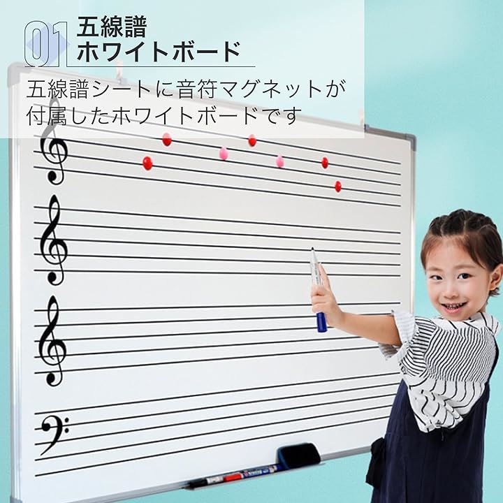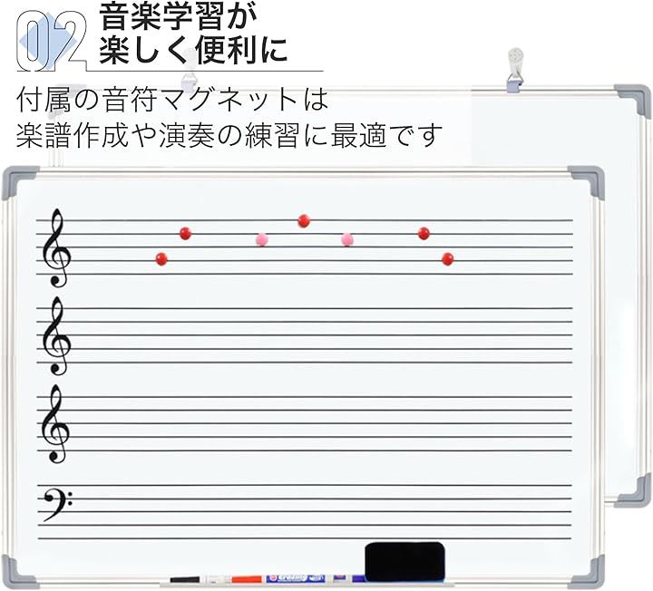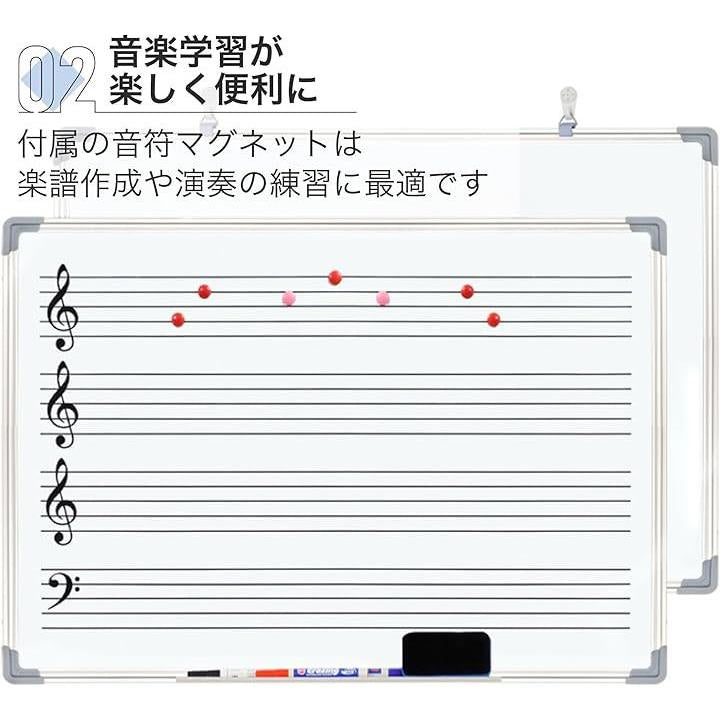 五線 ホワイトボード 壁掛け マグネット 音楽授業 音楽講師 ピアノ教室 音楽教室 レッスン 45x30cm