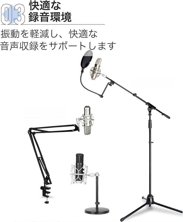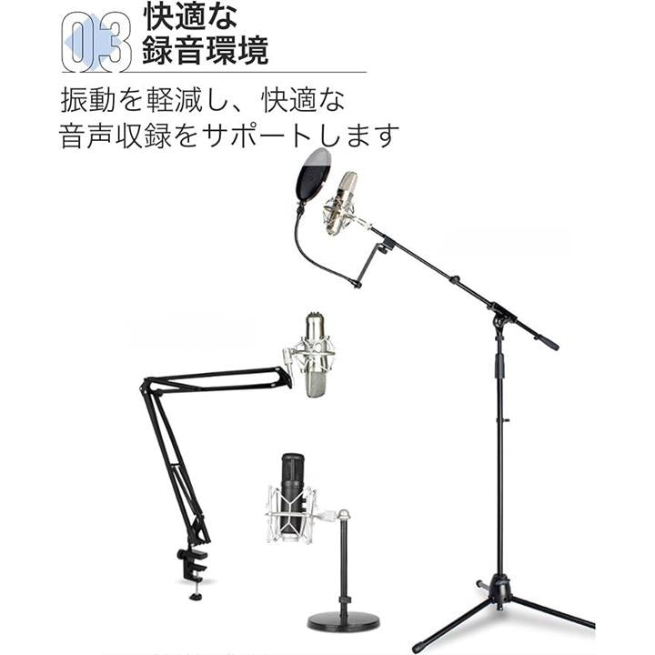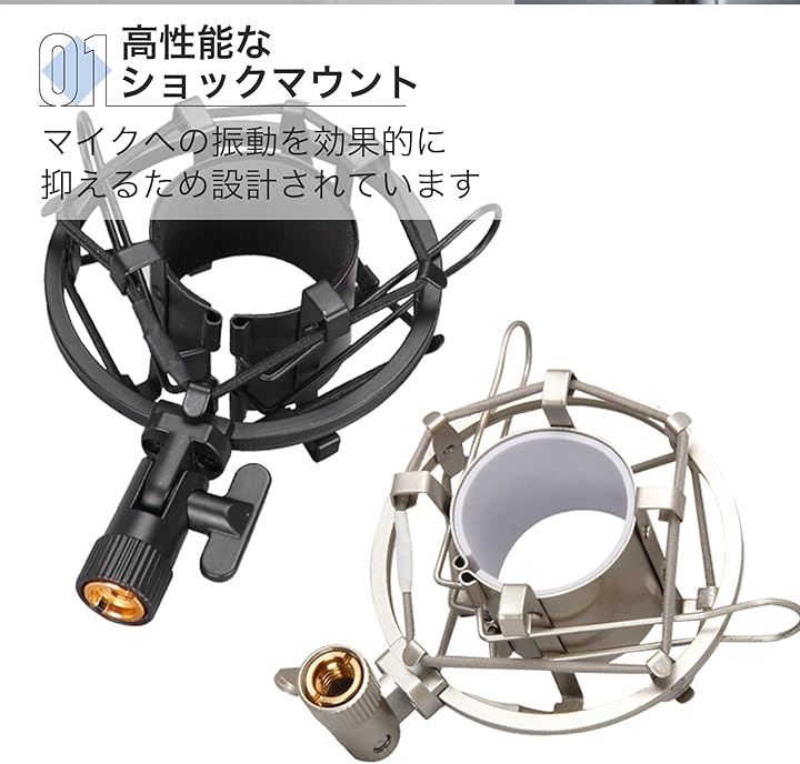 ショックマウント マイクホルダー 宅録 ノイズを抑える 音がクリア 振動防止 収録 コンデンサーマイク 取り付け簡単