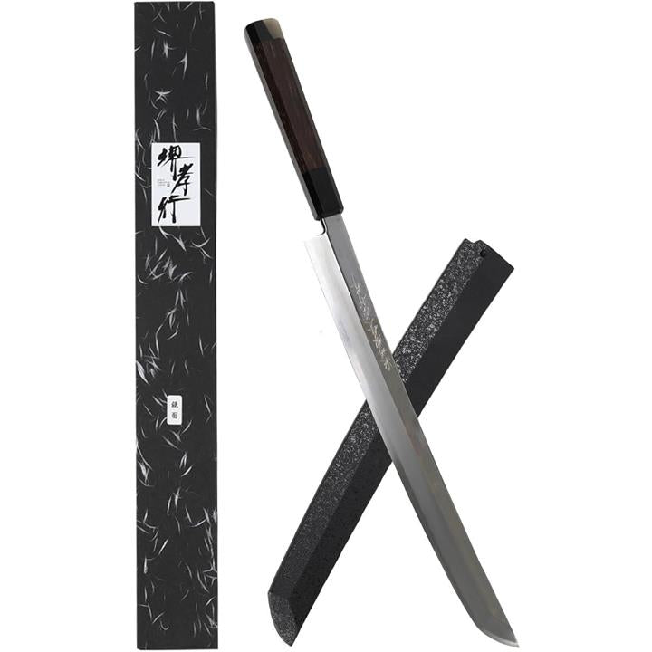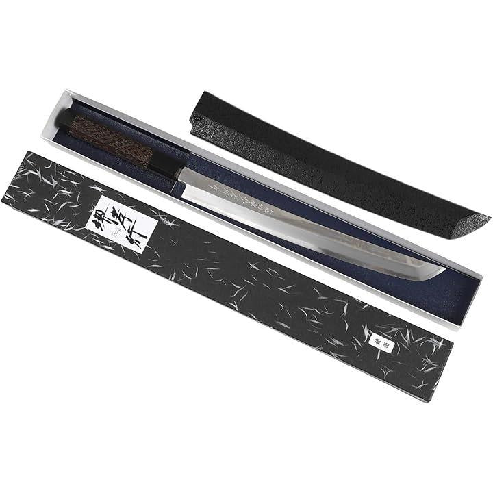 堺孝行 刺身包丁 さしみ 柳刃包丁 やなぎば 銀三鋼 鏡面加工 片刃 サヤ付き 日本製 青木刃物製作所