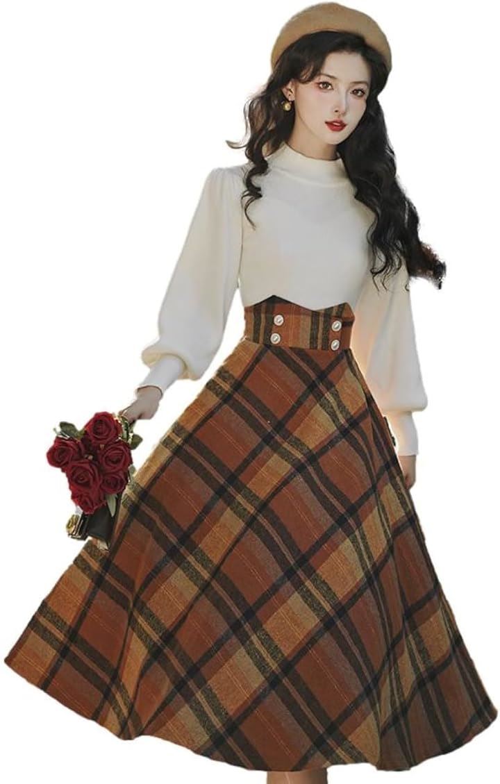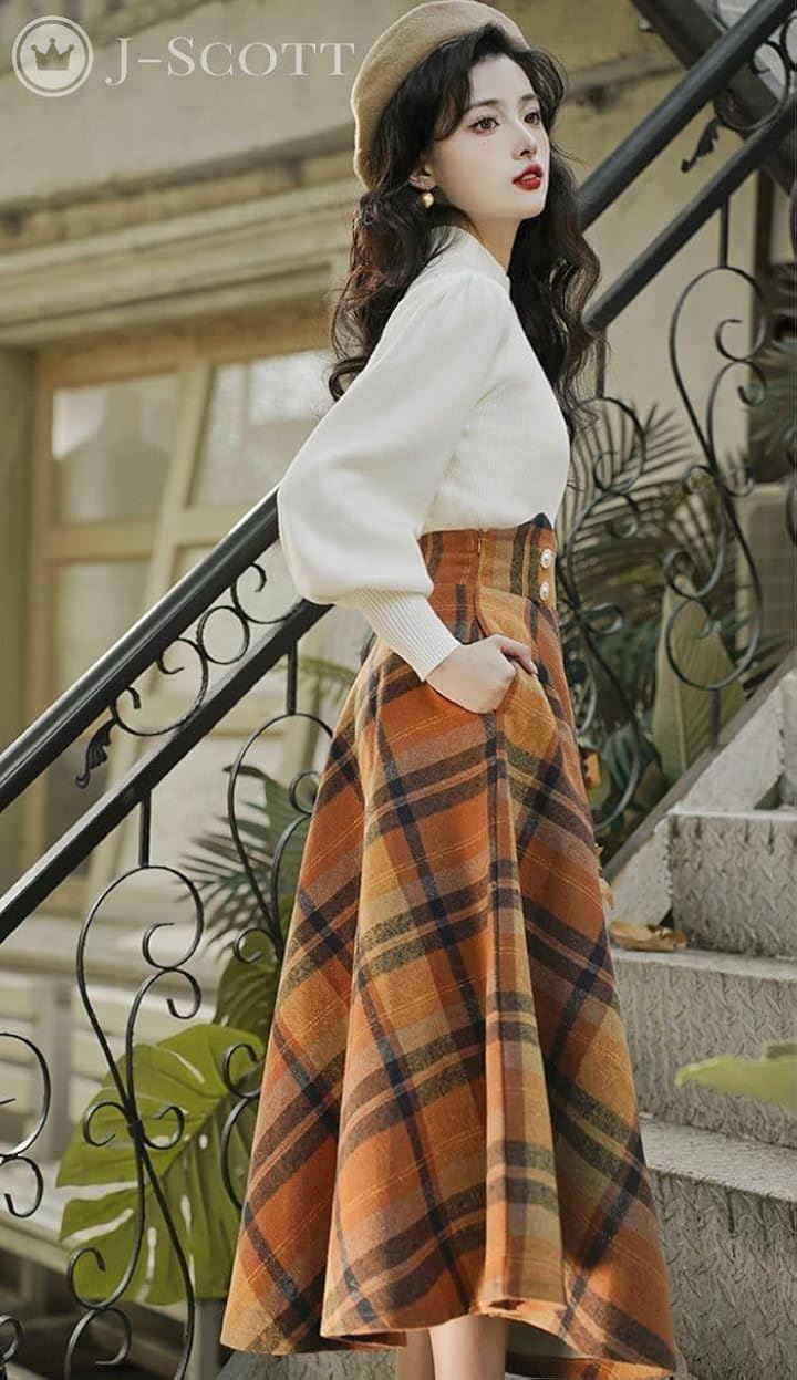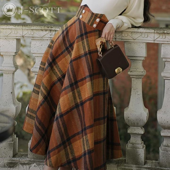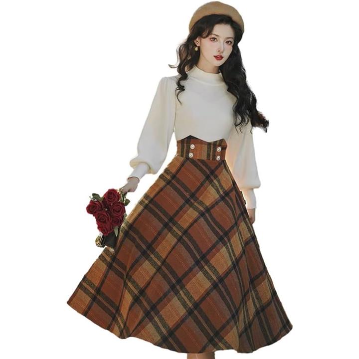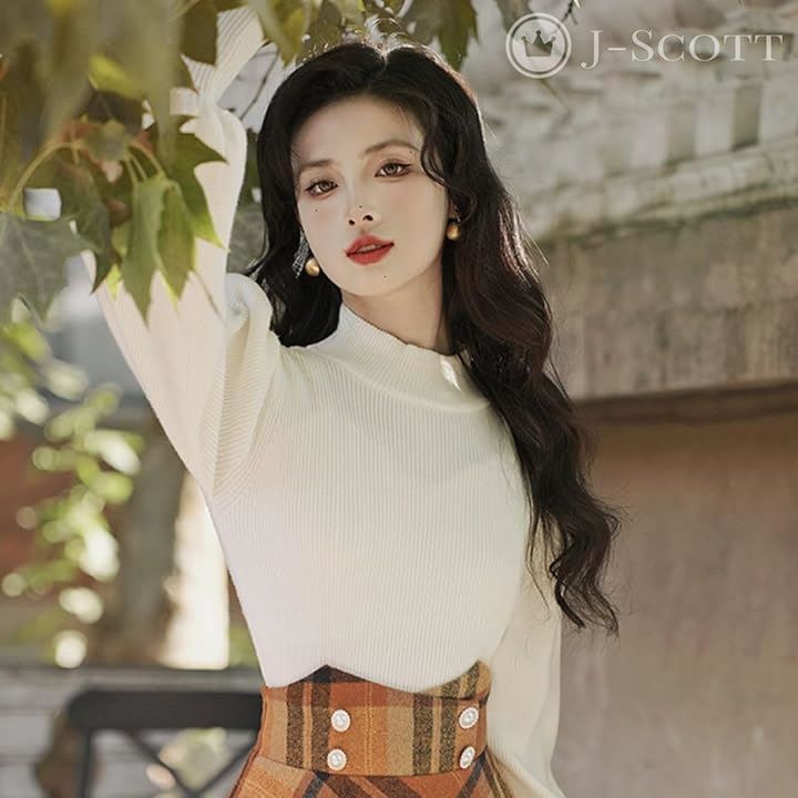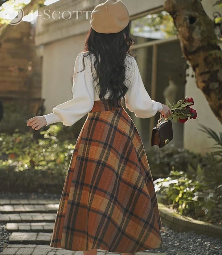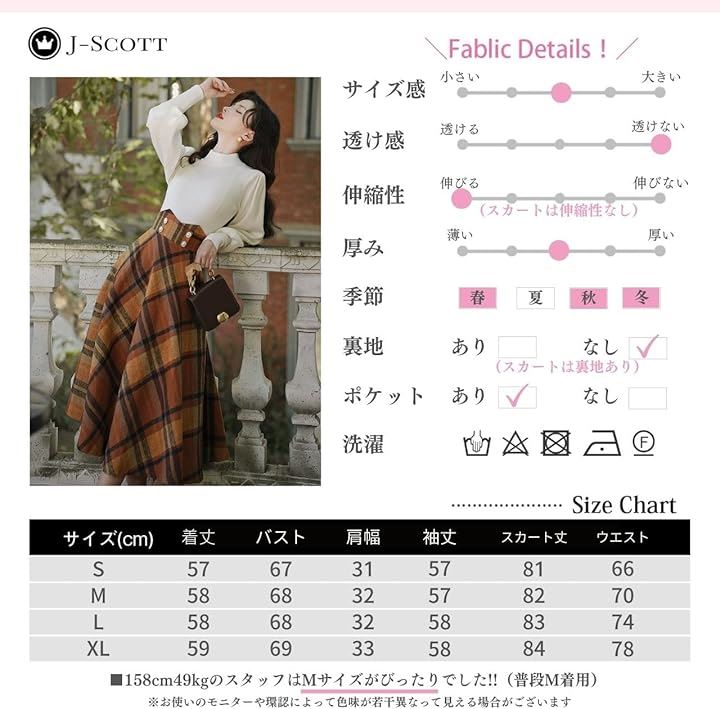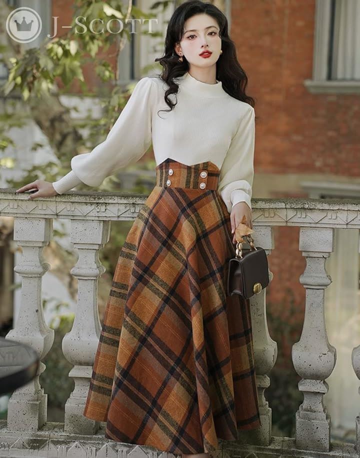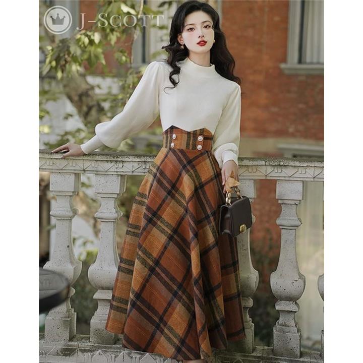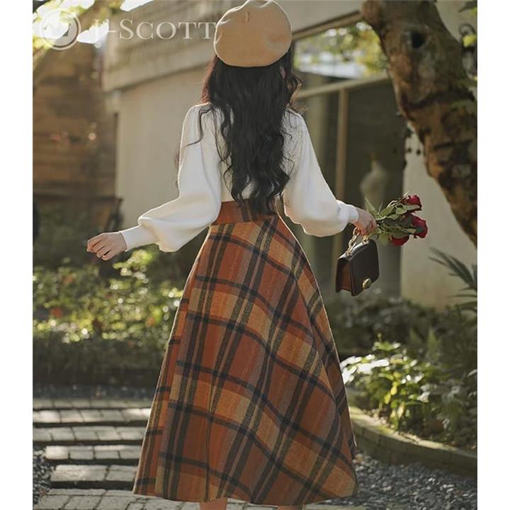 ジェイスコット セットアップ セーター&スカート レディース チェック ボリュームスリーブ ハイネック ミモレ丈