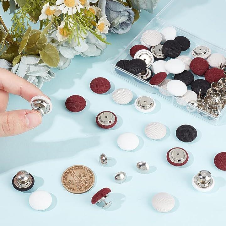 40個4色 くるみボタン 天ボタン 布ボタン トップボタン クラフトボタン 固定ピン付き 縫いなし 丸ボタン 生地ボタン ラウンドボタン ボタン交換 帽子用 装飾用
