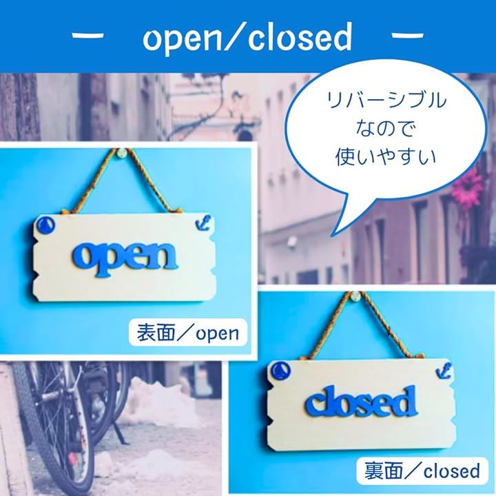 互換品Uccellino 木製 リバーシブル 看板 サインプレート 店舗 カフェ レストラン エントランス 営業中 OPEN CLOSE