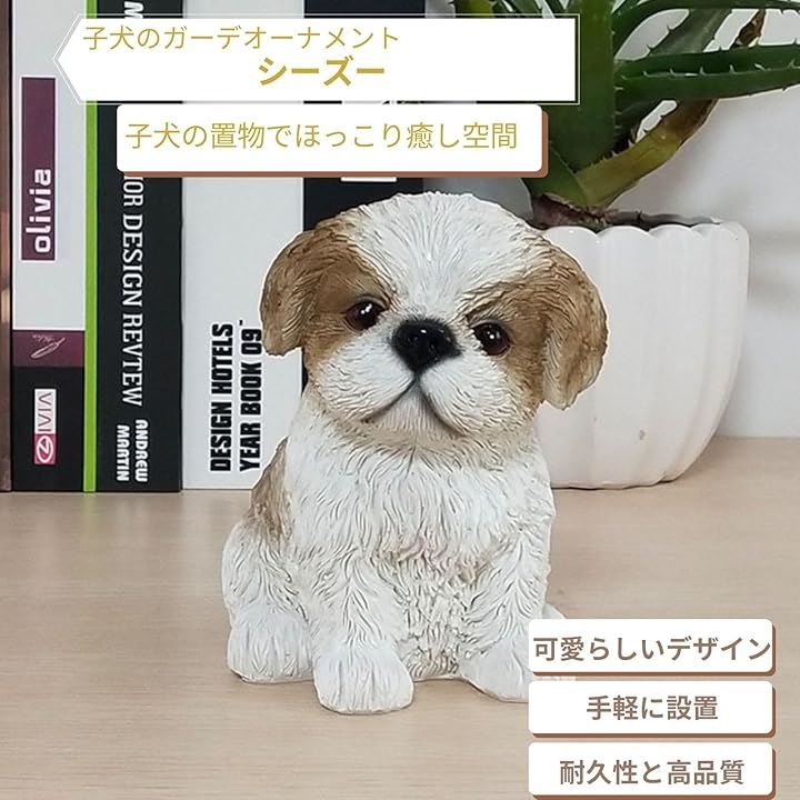 ガーデン オーナメント 犬 子犬 置物 飾り オブジェ フィギア シーズー